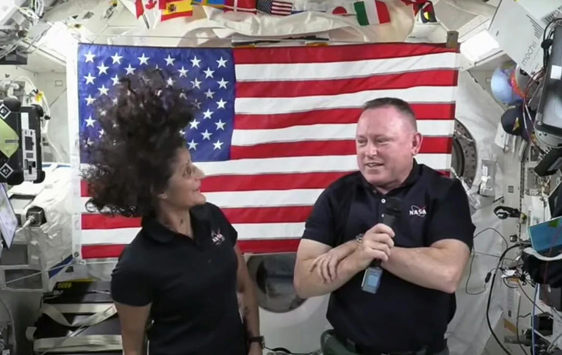 In their first news conference from orbit, the pair said they expect to return once thruster testing is complete here on Earth. They said they're not complaining about getting extra time in orbit, and are enjoying helping the station crew. Both have previously spent stints at the orbiting lab, which is also home to seven others.