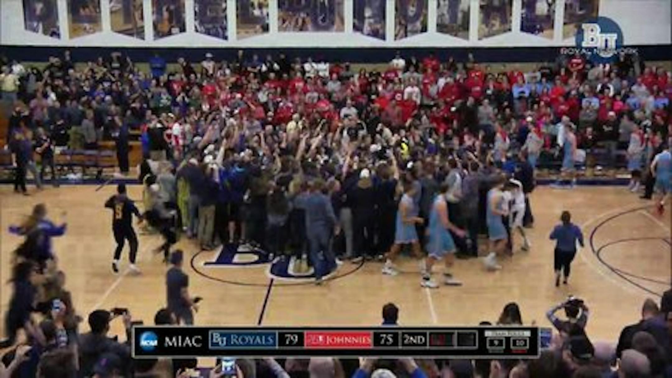 After Bethel defeated Carleton in the semifinal of the MIAC playoffs, 100 or so fans milled around on the court, crowding around cell phones watching St. John's defeat St. Thomas in the other semifinal. The crowd cheered as it was announced that the Royals would host the conference championship for the first time.