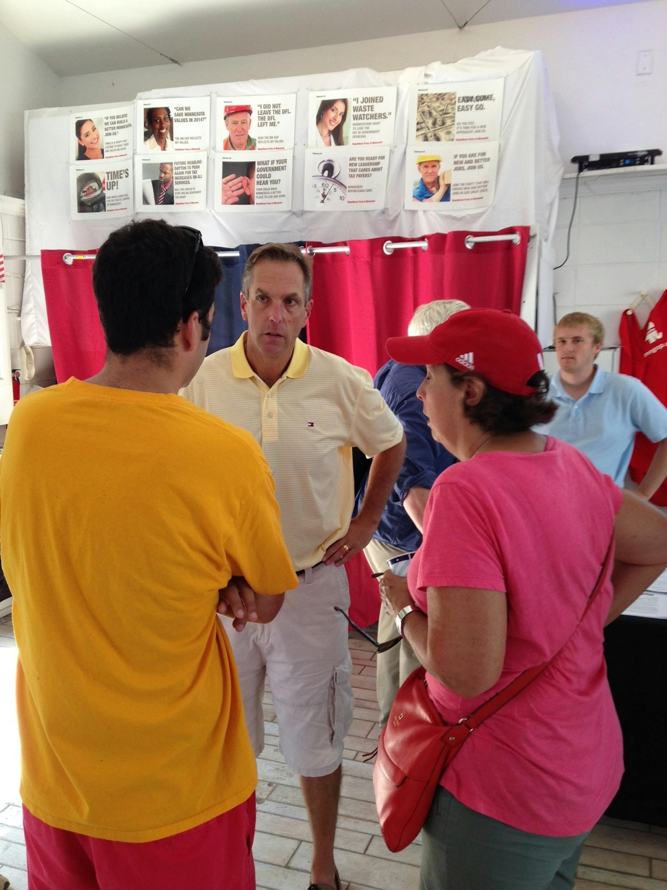 Republican U.S. Senate candidate Mike McFadden took a turn Tuesday greeting visitors at the Minnesota GOP booth.