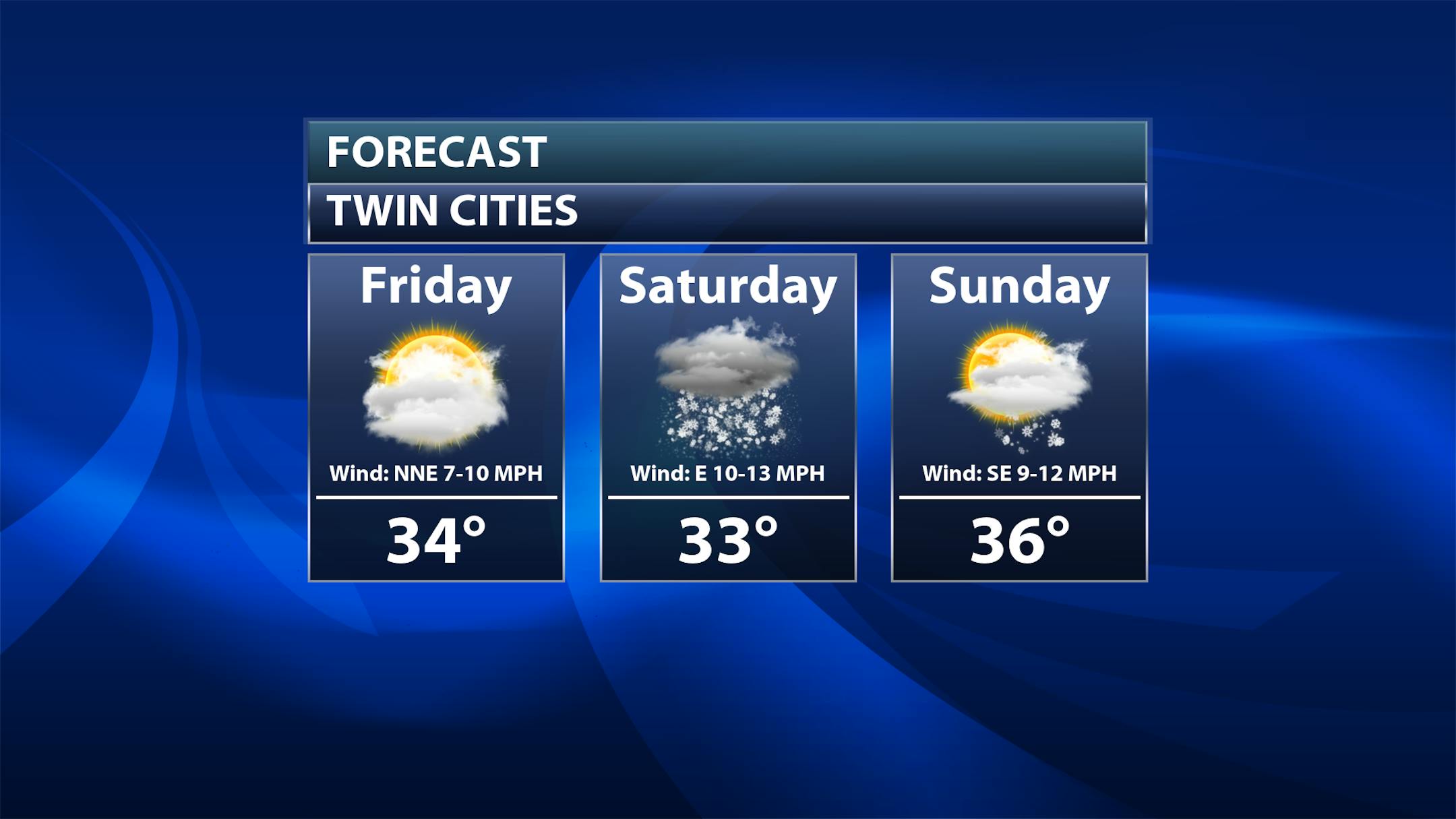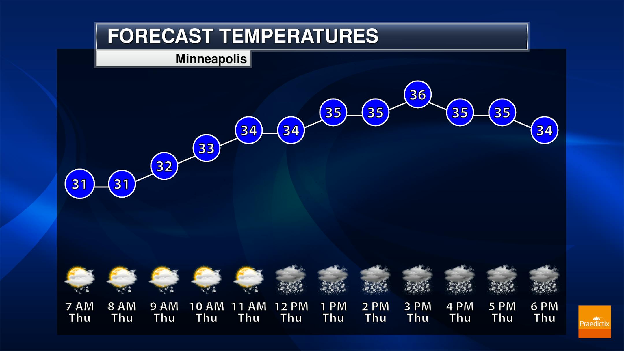 So we will watch those snow chances on Thursday here in the metro - especially from the afternoon into the overnight hours. Temperatures remain in the low to mid-30s throughout the day. Stronger easterly winds at 10-15 mph could cause some reduced visibility due to blowing snow.