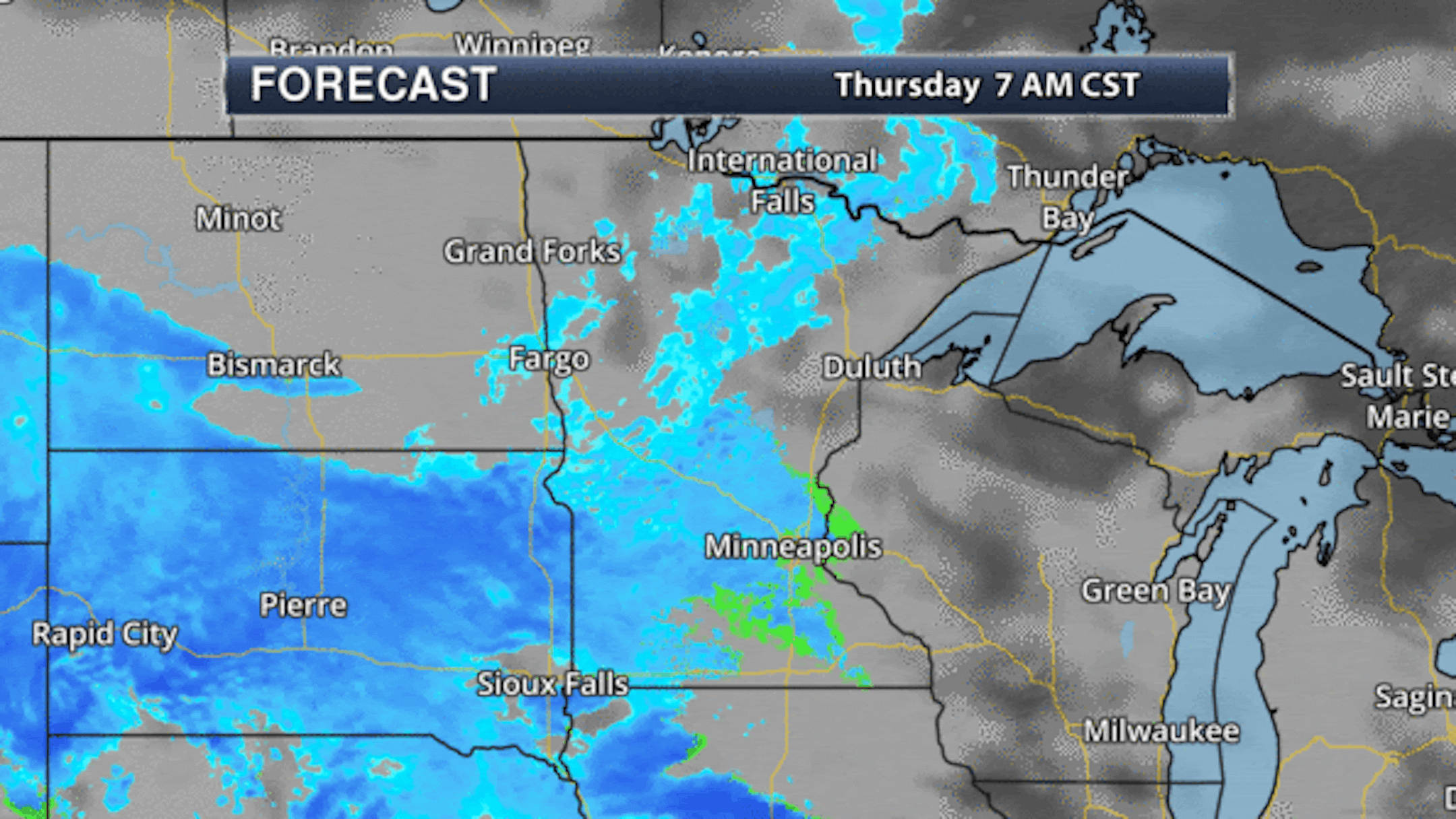 As a surface low moves across the Upper Midwest during the second half of the week, we will see a better chance of accumulating snow moving across particularly central and southern Minnesota Thursday into Friday. Already by the midday hours Thursday, snow will be falling across southern Minnesota, pushing northward as we head through the afternoon hours - moving in just before the evening commute in the metro. This snow will continue to fall across the region through Thursday Night before quickly moving out Friday morning.
