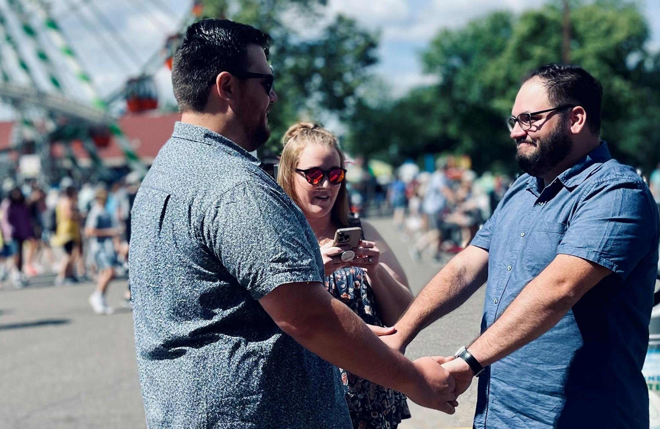 "A few weeks ago," he said, "Ryan and I were at home joking around on the couch, and one of us threw out, 'What if we got married at the fair and surprise everyone?'"