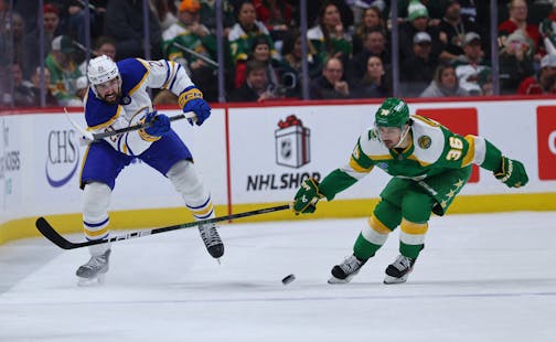 Buffalo scored a pair of unusual goals before tagging Filip Gustavsson three times in four shootout attempts, but going to overtime meant the Wild did record a point for the 11th game in a row.