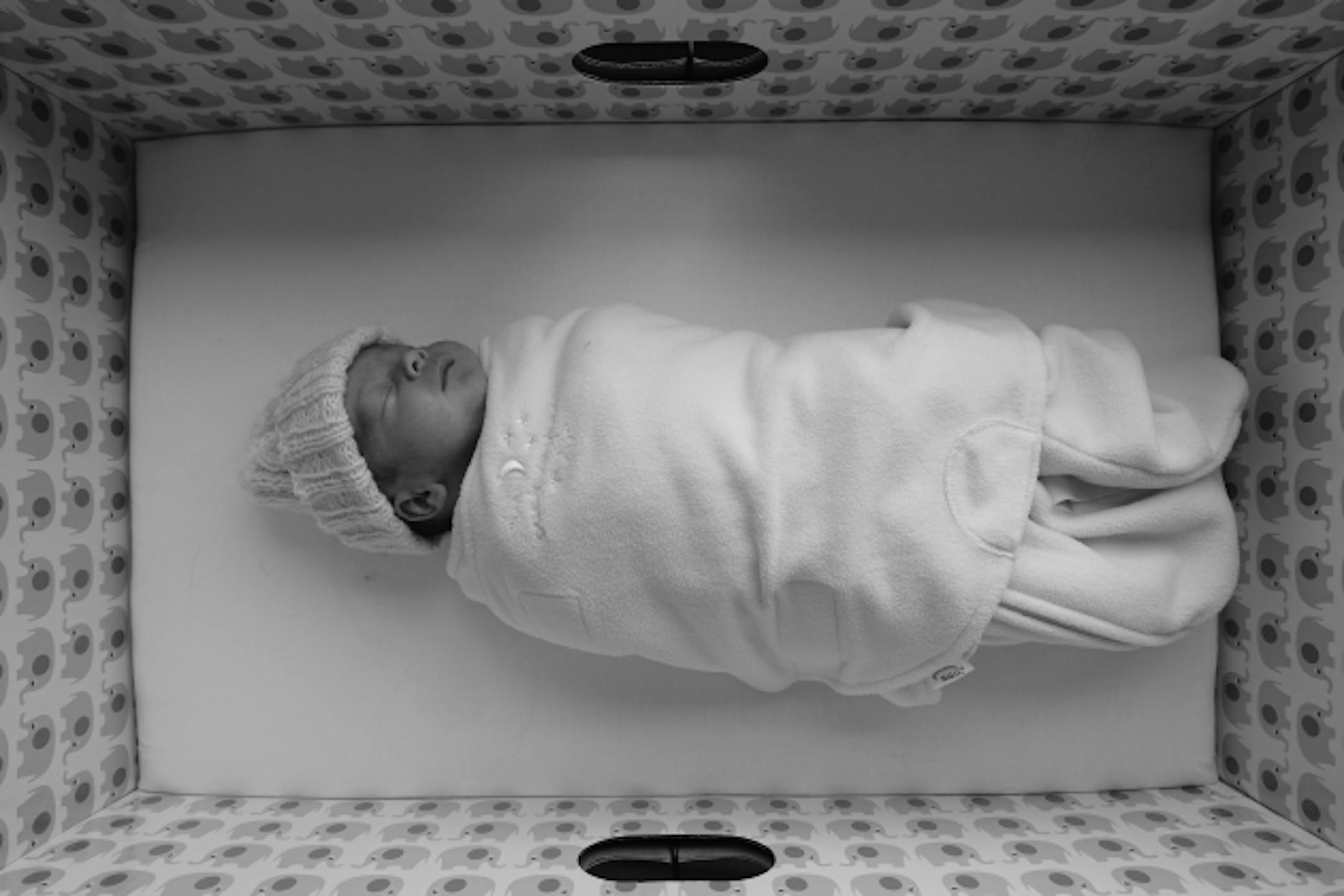 I bought the box after learning that every pregnant mother in Finland is given a maternity starter kit by the government, a box filled with clothes, blankets, health kits, and a mattress. Because this is Finland, the box is impeccably decorated with charming designs, and includes a snowsuit, balaclava, and sleeping bag (for leaving your baby to nap outside coffee shops) as well as condoms (for the parents). When baby outgrows it, you stuff it with summer clothes, tax returns, or Friends tapes—or recycle it. You can choose to receive a couple hundred dollars instead, but—because this is Finland—nearly everyone opts for the box.