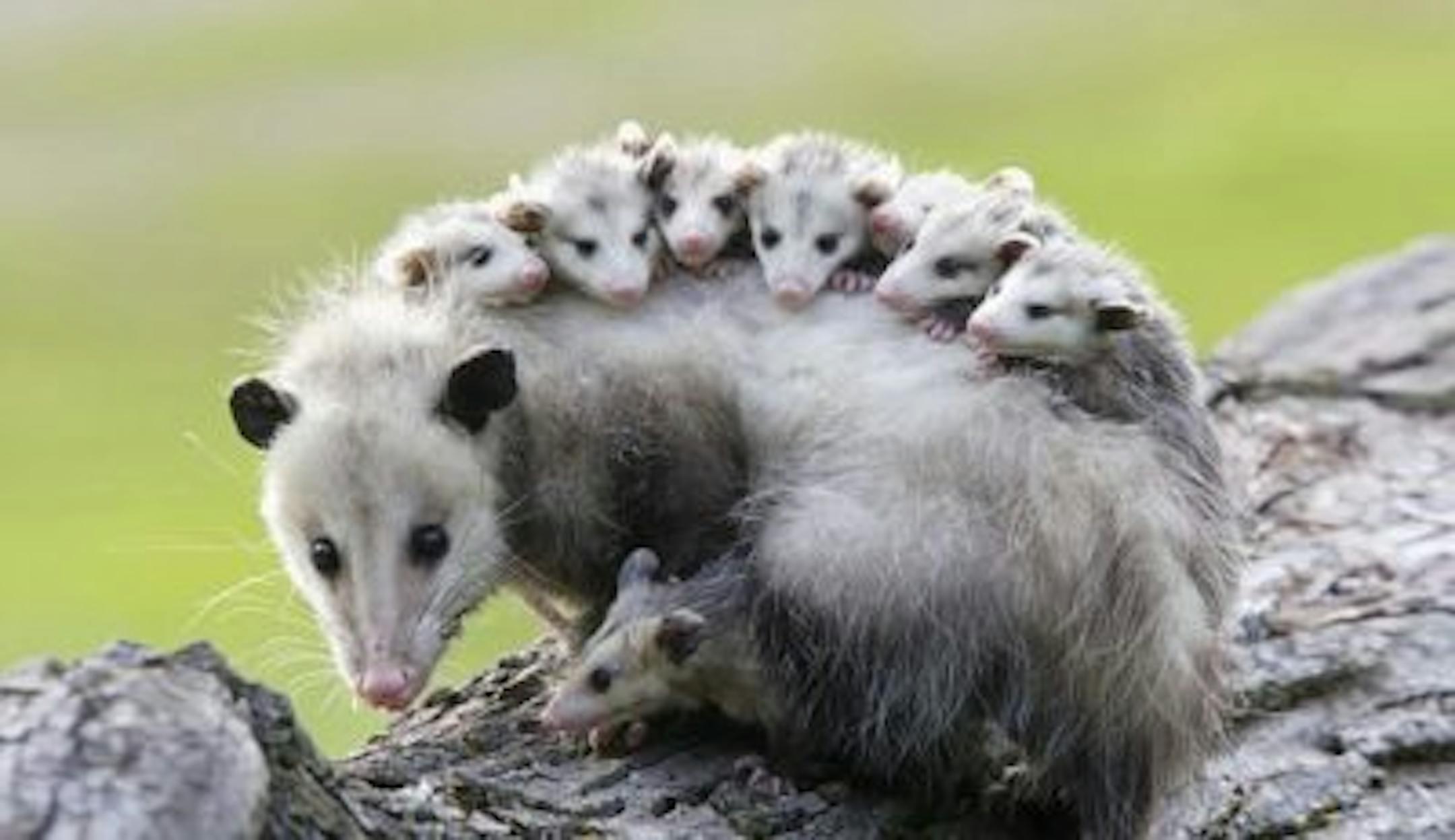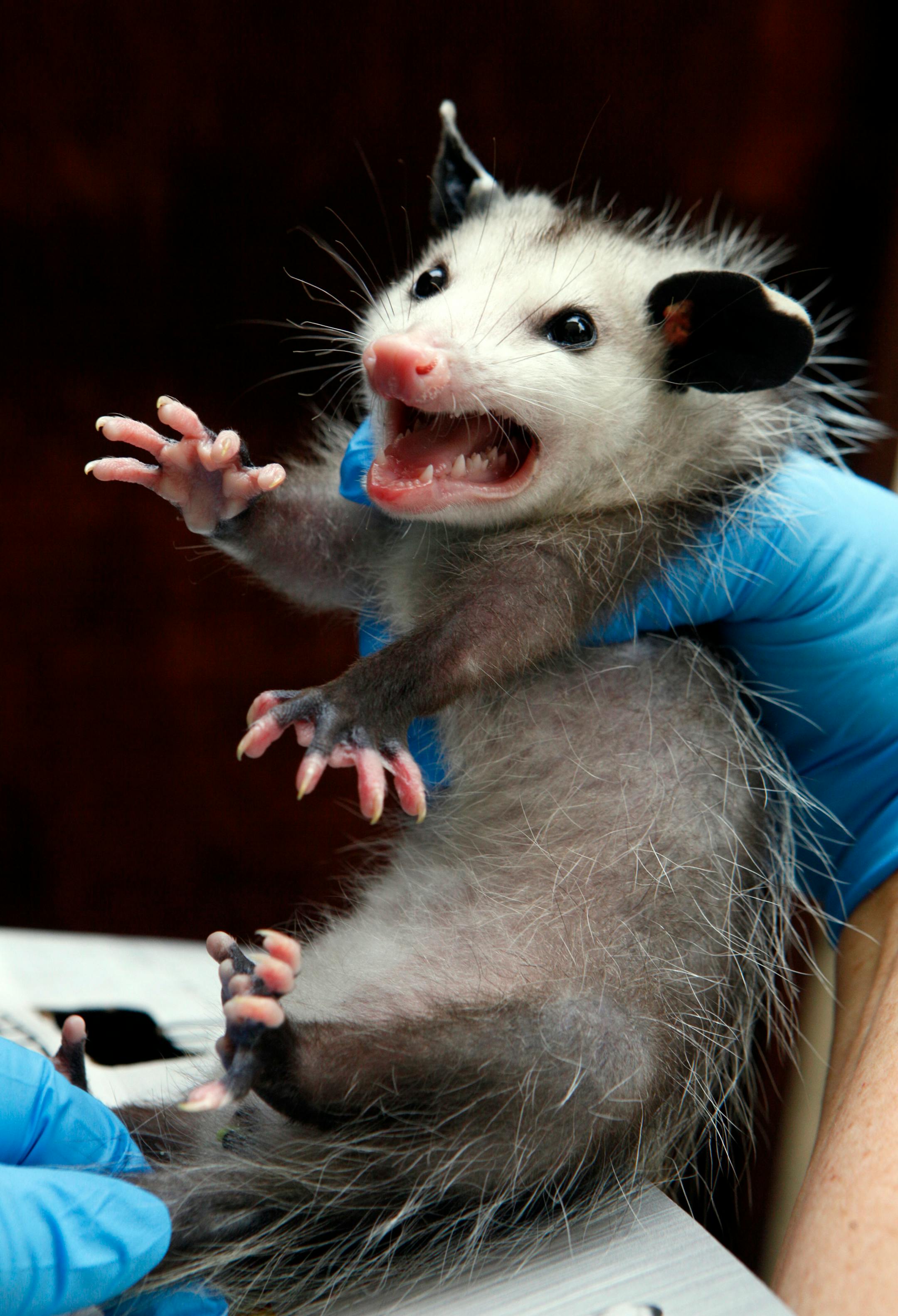 Technically called Virginia opossums, they mate between January and May and can have litters of six to 20 babies about two weeks later.
