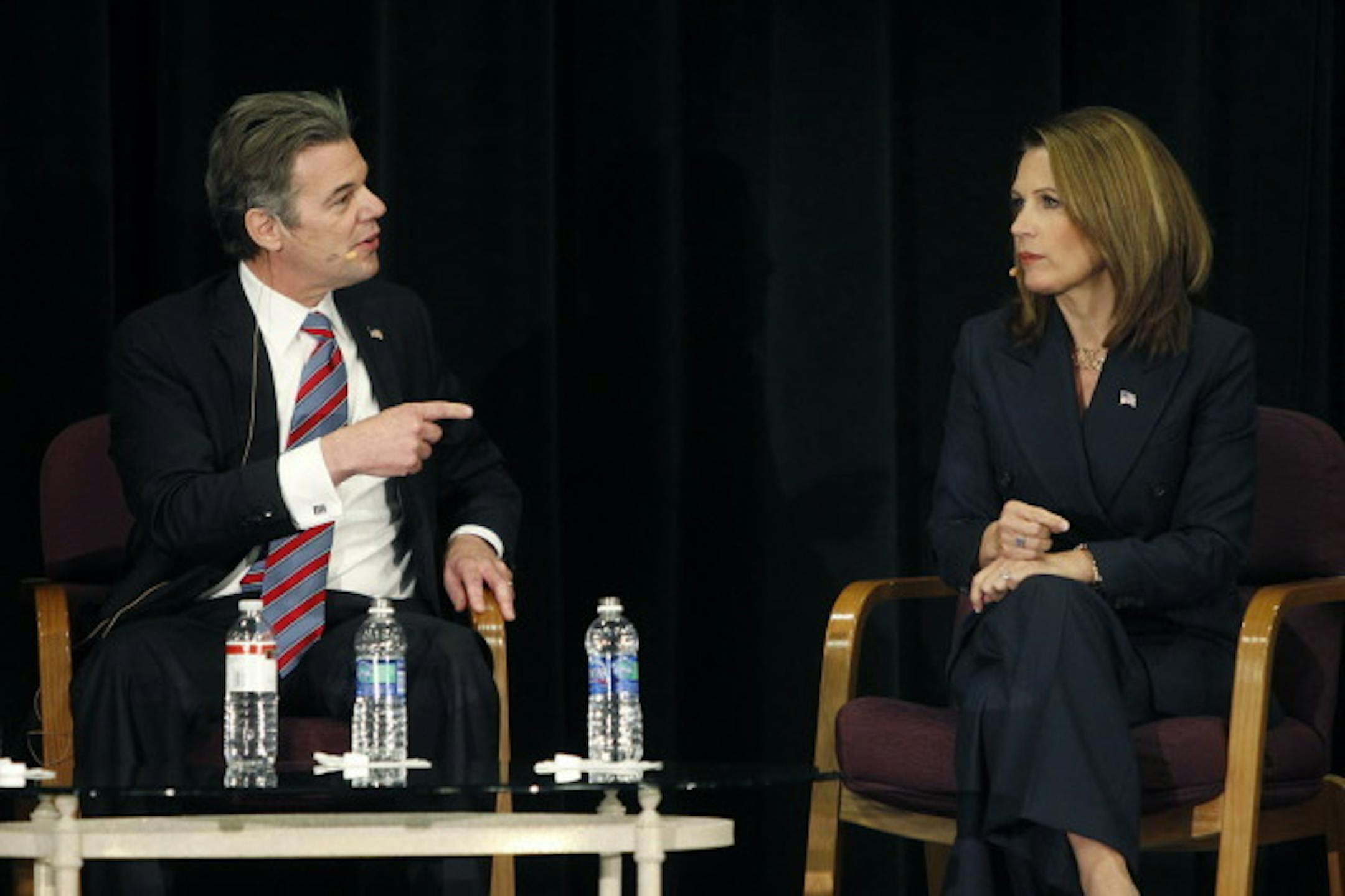 U.S. Rep. Michele Bachmann went head-to-head Tuesday with her DFL opponent Jim Graves in a conversation that frequently turned testy over Obamacare, entitlements, a bridge and the best routes to job creation.