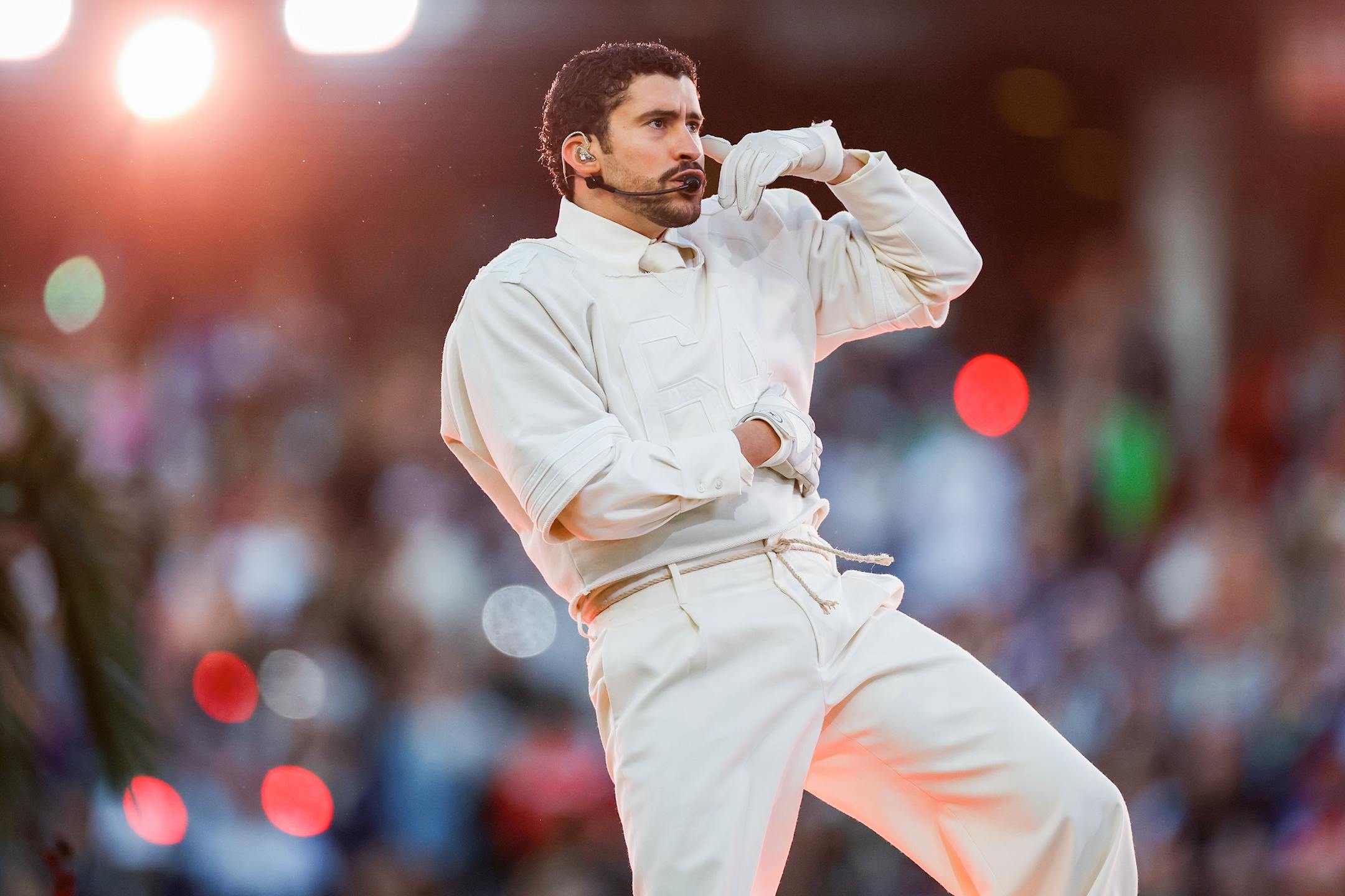 Bad Bunny (born Benito Antonio Martínez Ocasio, hence Benito to his fans) wanted to give the world a well-rounded taste of Puerto Rico. On the Levi’s Stadium football field filled with tall crops, the megastar, clad in all white with a No. 64 football jersey with “Ocasio” on the back, took a tour of his island while clutching an old, heavily used American football.