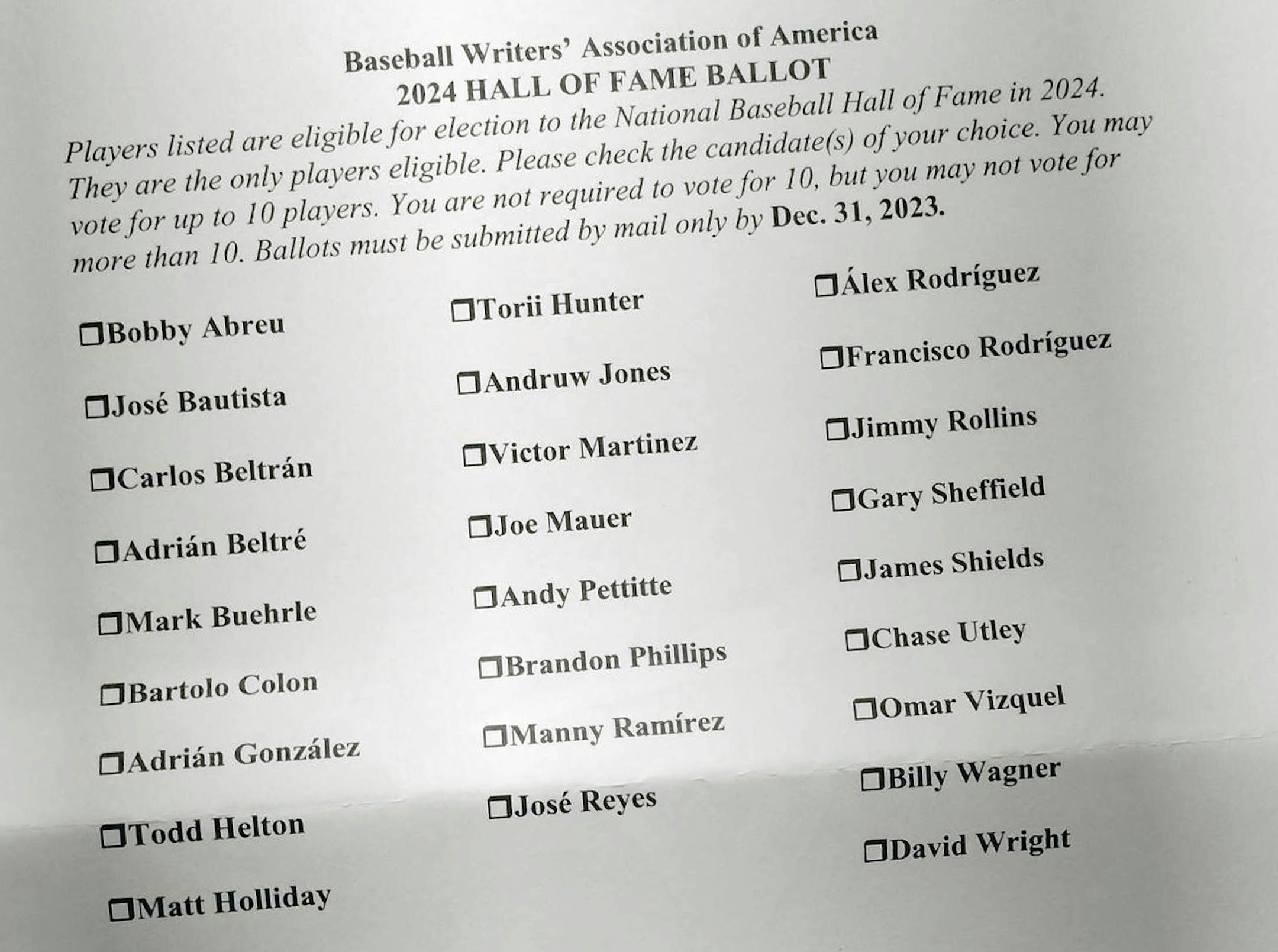 Approximately 400 members of the Baseball Writers Association of America have handed in their ballots for the class of 2024. And each voter is allowed to do what they want with his or her ballot. Many agree to have their ballots posted on the BBWAA website two weeks following the announcement. Many choose to post their ballots on social media upon completion. Some write accompanying stories in which they reveal their reasoning for their selections and omissions. I've long believed that this is a clever way for some writers to prove to their editors that they aren't taking the winter off.