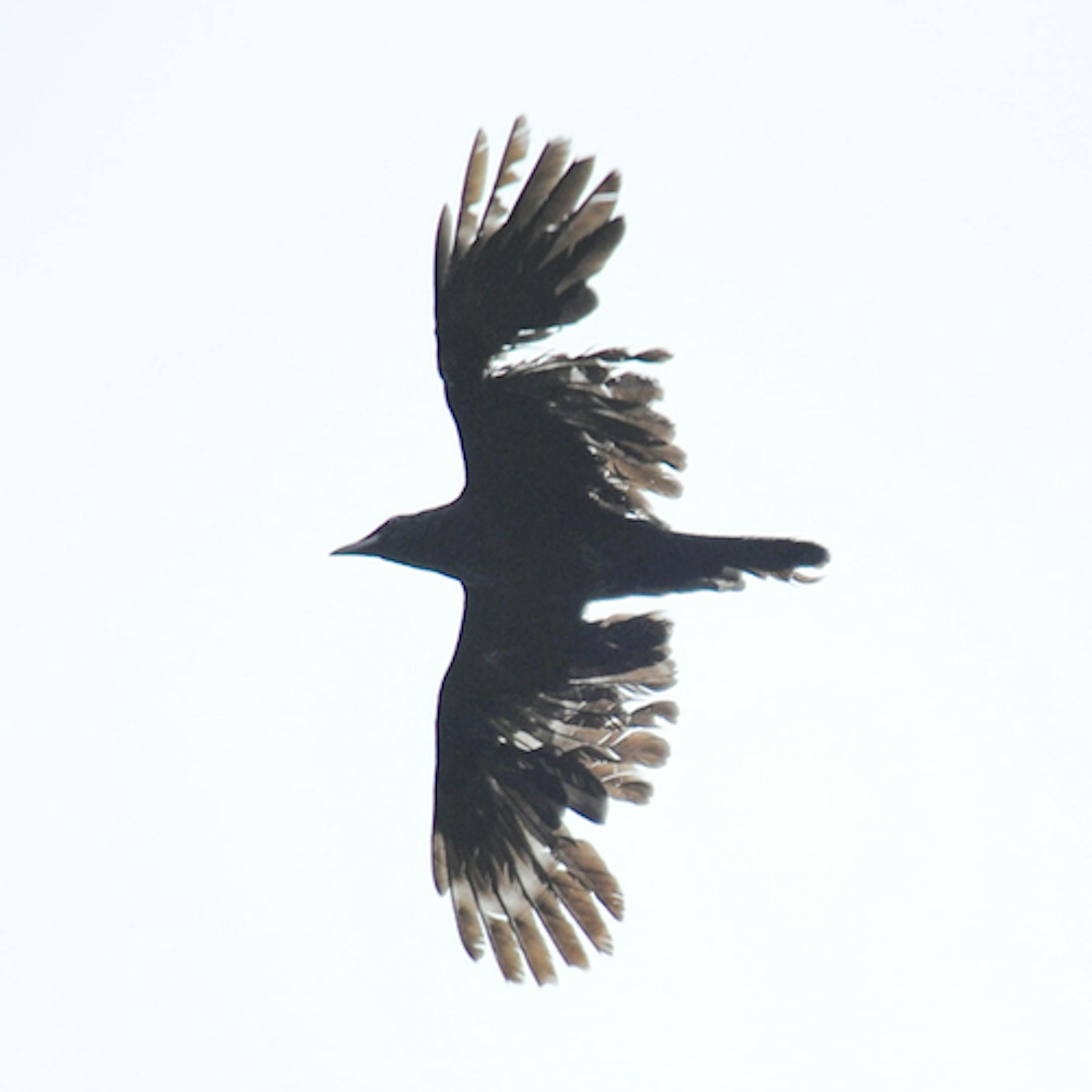 When I saw this American Crow approaching yesterday i thought I was looking at molting bird. Then it flew over me, and as I took this photo is was apparent that something else had happened. The crow is battered. Feathers are missing and broken. Feather vanes are gone in some places. The bird looks lucky to be able to fly.