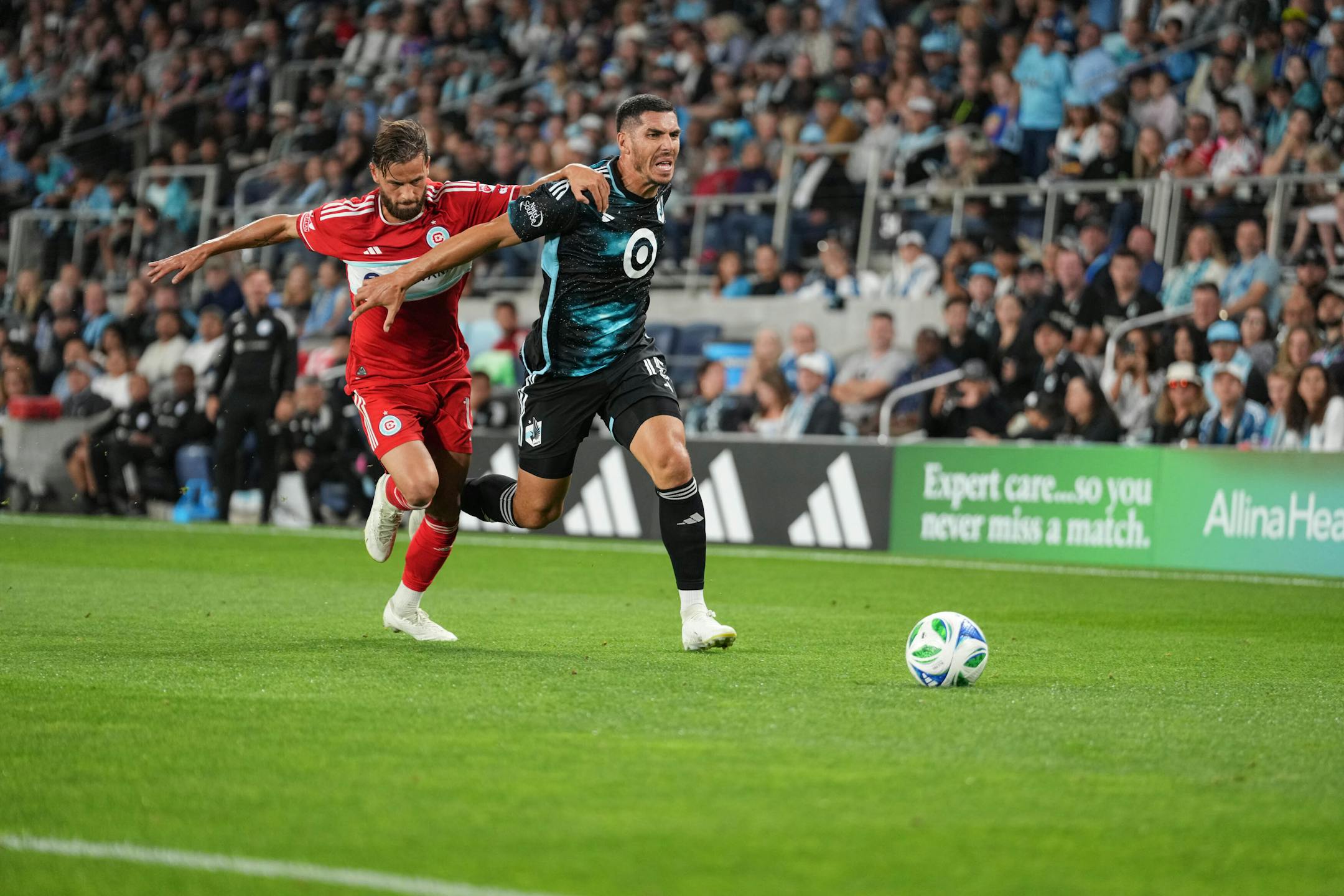 The Loons might be the team known for its set pieces, but the Fire are no slouches either, and in the 26th minute, they proved it. St. Clair made the initial save from a header off a free kick, but the ball fell directly to the feet of Chicago center back Joel Waterman, who roofed the rebound for the game’s first goal.