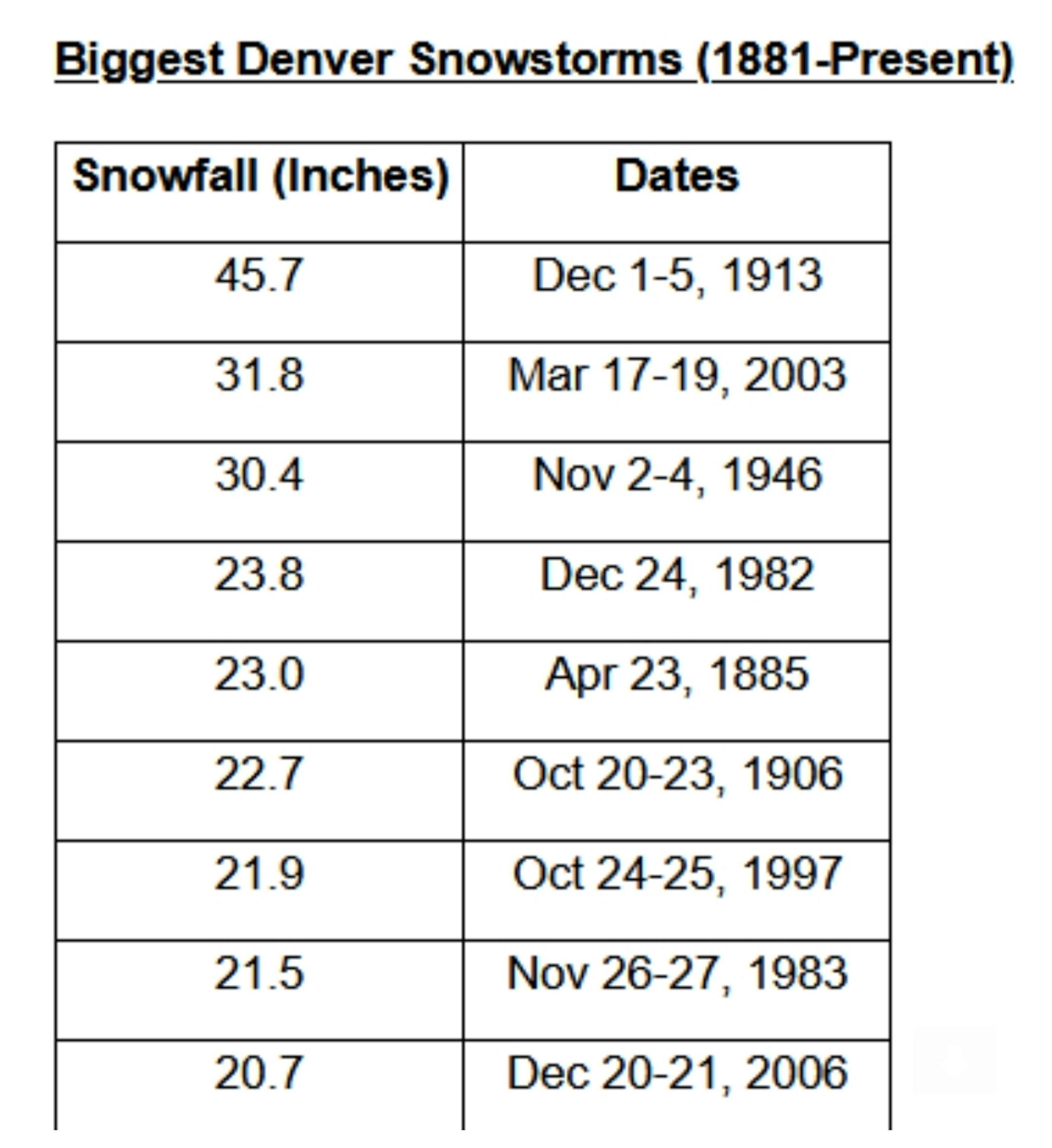 Denver Historical Perspective. Looking at recent years of heavy March snowfall in the Denver area, they had a one-day snowfall total of 13.1" back on March 23, 2016, which looks like it could be surpassed at the moment (that is NOT the top one day March snowfall on record, though). The National Weather Server in Denver/Boulder says that there is currently a low potential that this system could reach the heights of the March 2003 snowstorm, which between March 17th and 19th saw 31.8" fell.