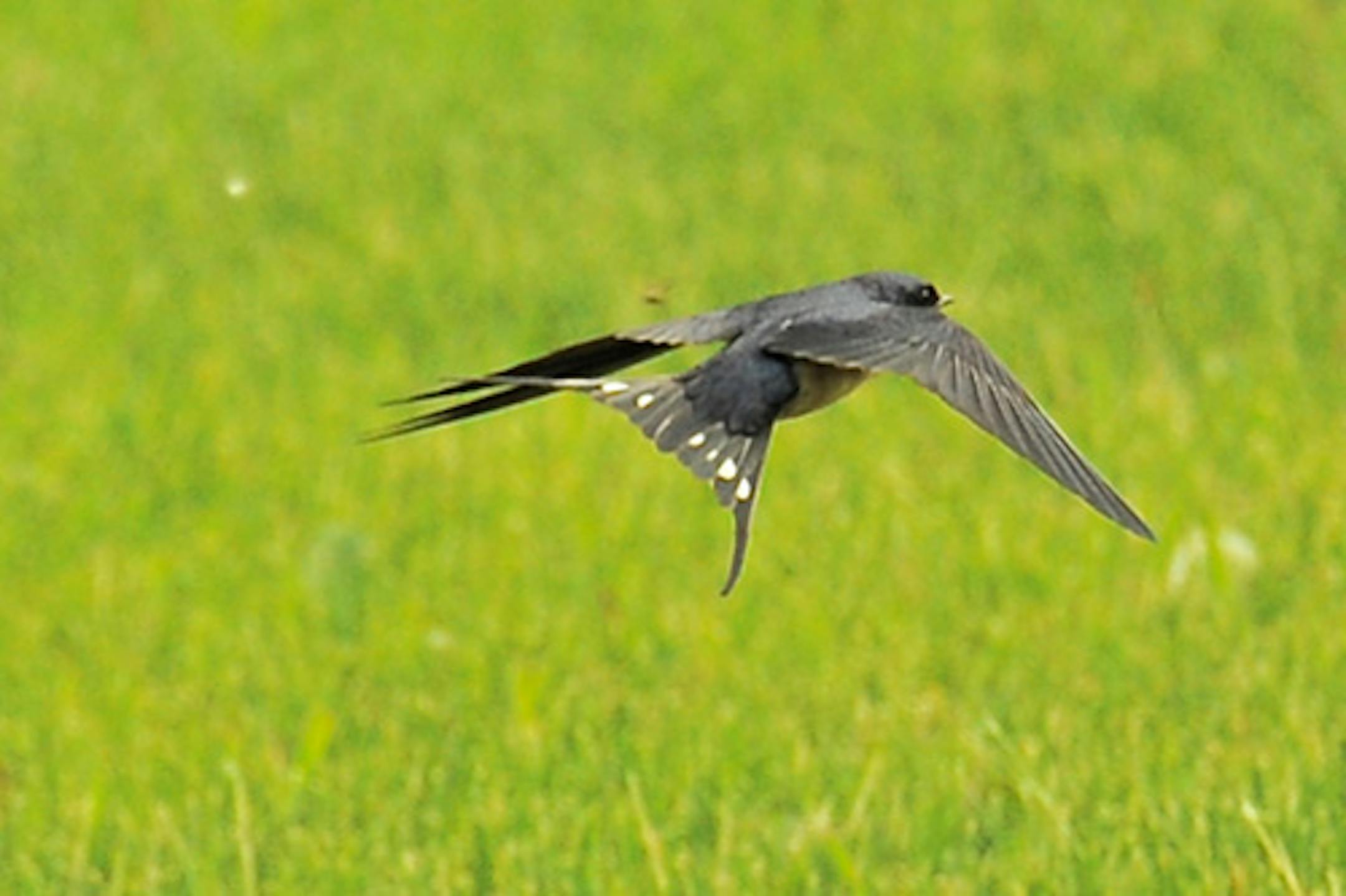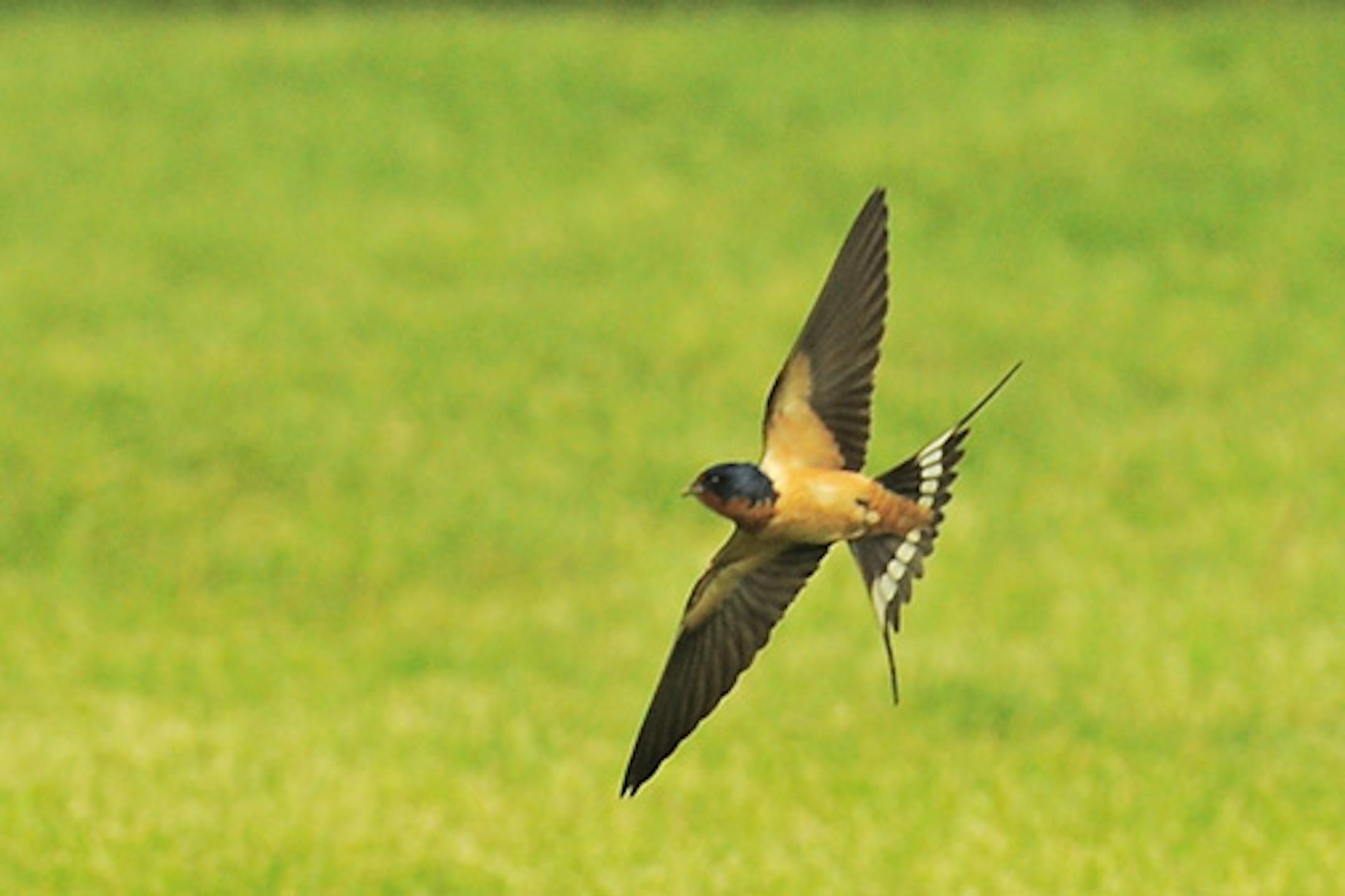 Some species of birds are most beautiful when in the air. Barn Swallows on a wire or fence don't have the dramatic beauty they show when swooping in pursuit of insects. These birds were feeding above a lawn this morning, using wings, tail, and a strong wind to twist and turn and race inches above the grass. It's a shame those tails are not more readily seen.
