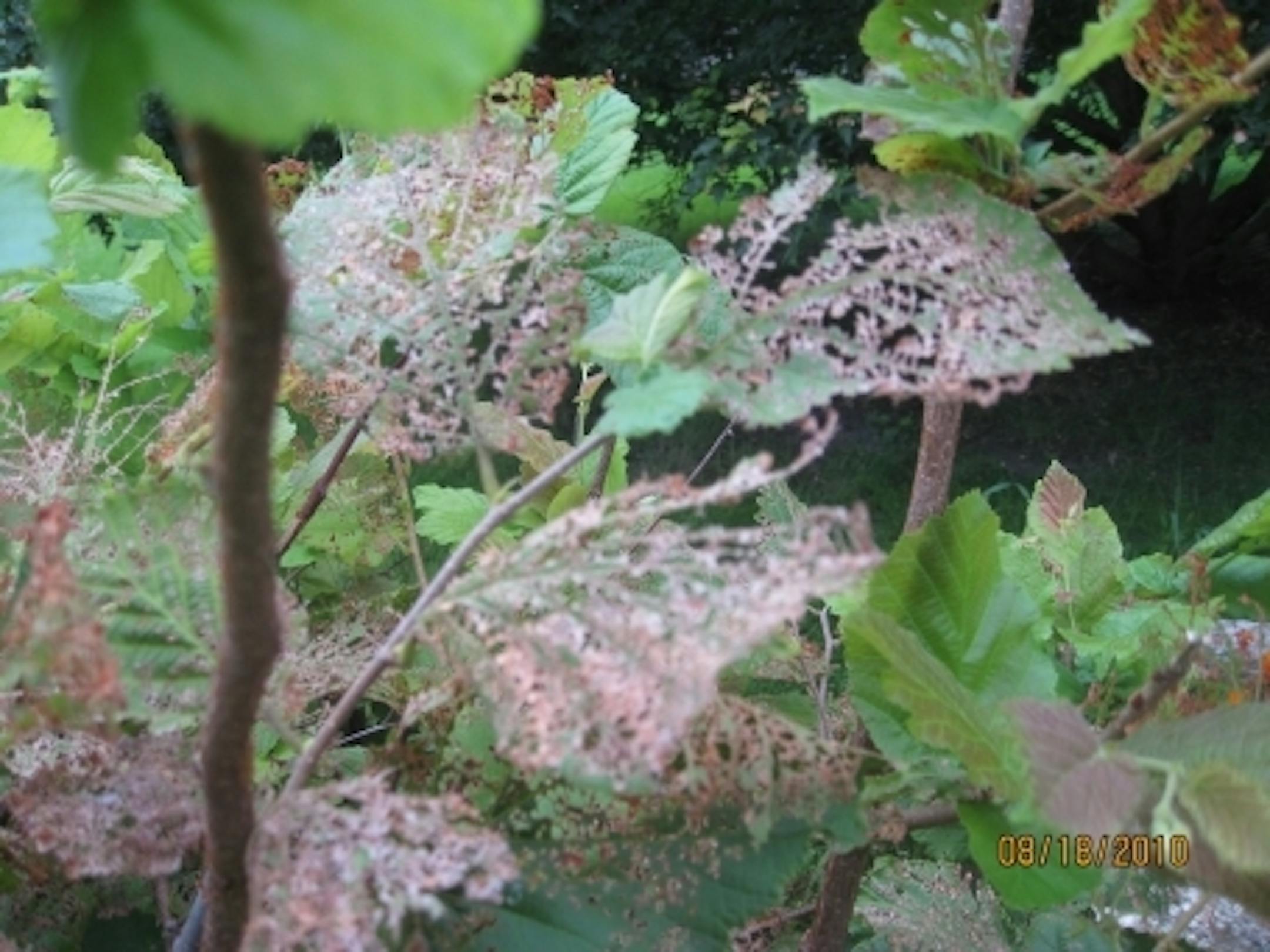 What makes them especially challenging for gardeners is that they feed on over 300 plants. In my garden, they appear to nibble here and there on a few species. But there's one plant that attracts them like a cheap, all-you-can-eat buffet: a contorted filbert tree.
