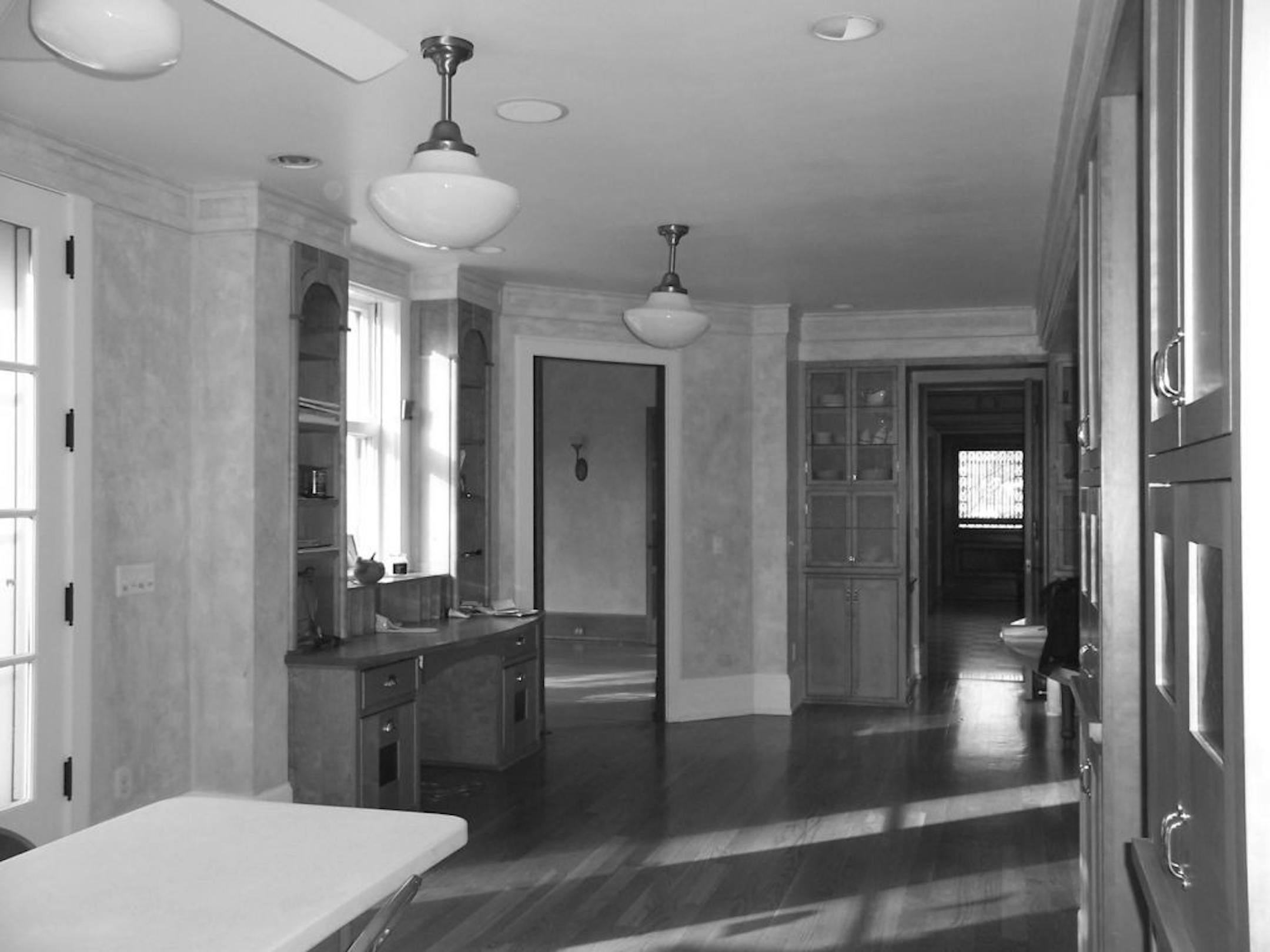 Repurposing the space: Aulik, who has an affinity for old houses, had looked at the home with several prospective owners before he started working with the Higgins family. "Everybody commented on it not having a kitchen/family room," he said. There was plenty of space, but the home had originally been designed with a small service kitchen adjacent to servants' quarters. Even after a remodeling by a previous owner, the kitchen still wasn't fully integrated with the space surrounding it. "We needed to repurpose the existing square footage to suit the needs of a contemporary family," Aulik said.