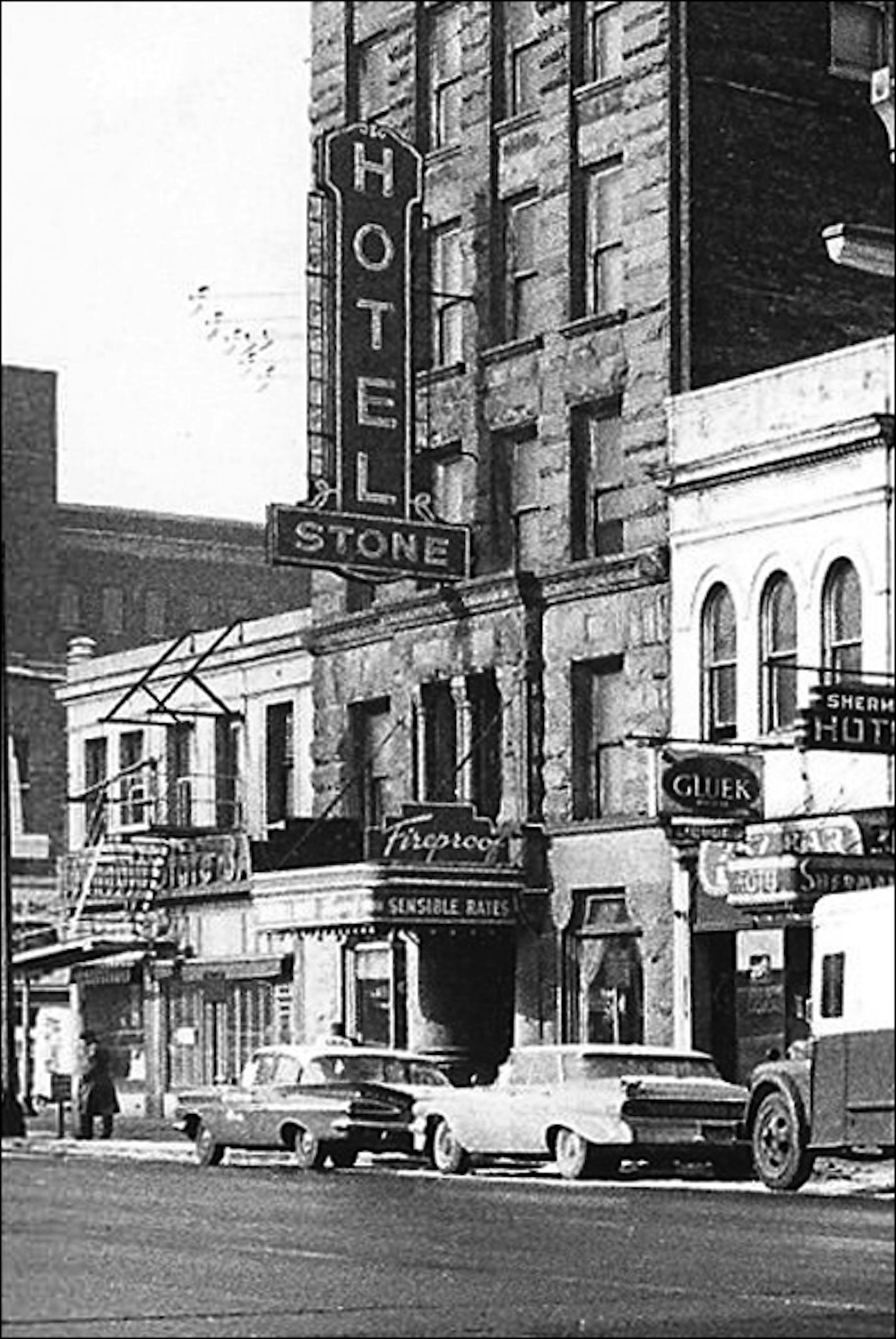 It's one of those buildings that would be apartments today, if it had been permitted to live. Or, perhaps, offices, since that's what it was when it opened: the Stone was originally the Sykes Block, and it was designed by Warren H. Hayes, a noted Arts and Crafts-style architect of churches both in the Twin Cities and around the country. Hayes died in 1899 -- the year the Sykes block was completed.