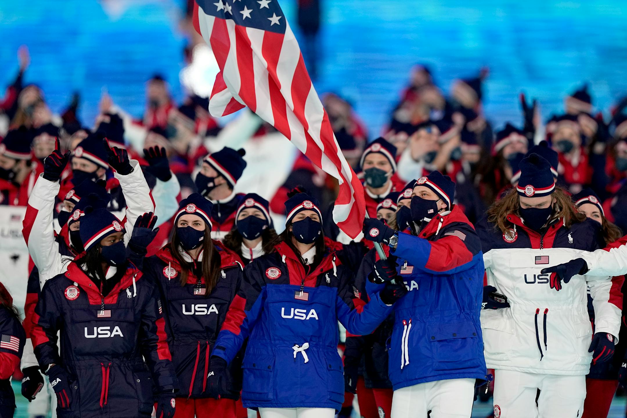 John Shuster, back to defend the curling gold medal his team won four years ago in South Korea, held the flag with speedskater Brittany Bowe as Team USA entered the Beijing National Stadium. This is their month to be stars.
