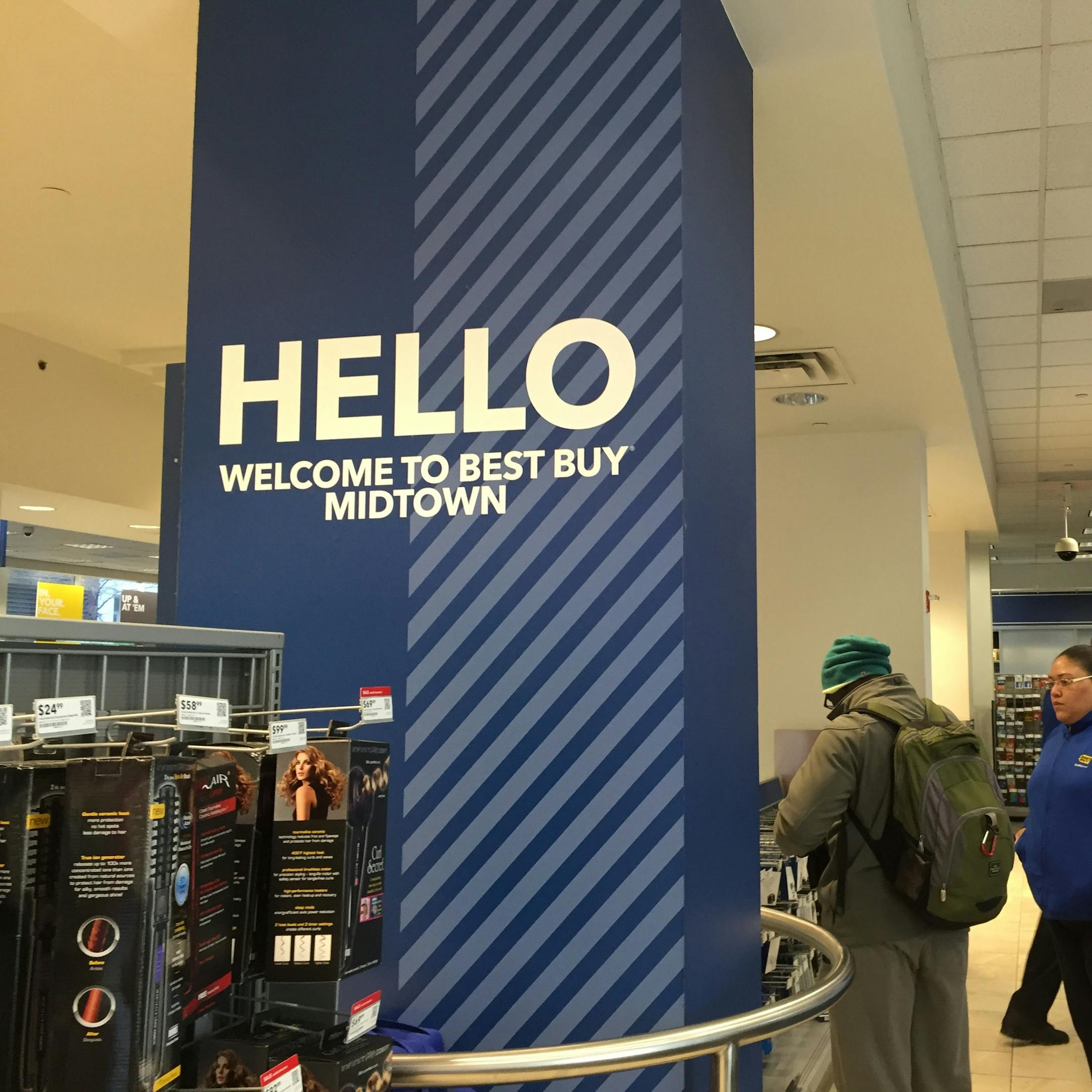 So Best Buy has been doing things like moving its Apple mini-shops, and expanding them, to prime real estate near the entrances of its Manhattan stores. It separated its in-store pickup areas from the rest of its customer service counter and boosted its staffing in that area to reduce wait times when customers come in to fetch online orders. And it added concierges who walk around with tablets in hand to help customers navigate its multilevel stores.