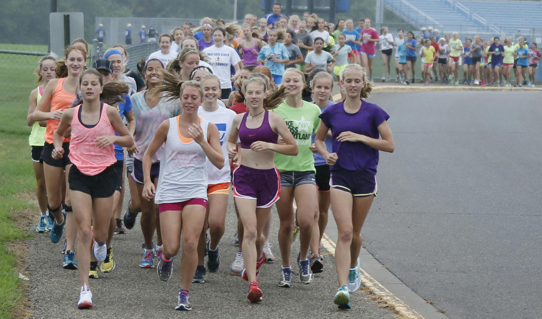 The clock read 9:19 a.m. as the Wayzata girls' cross-country team, defending state and national champion, burst from a standstill to tackle runs of distances covering 3 to 6 miles.