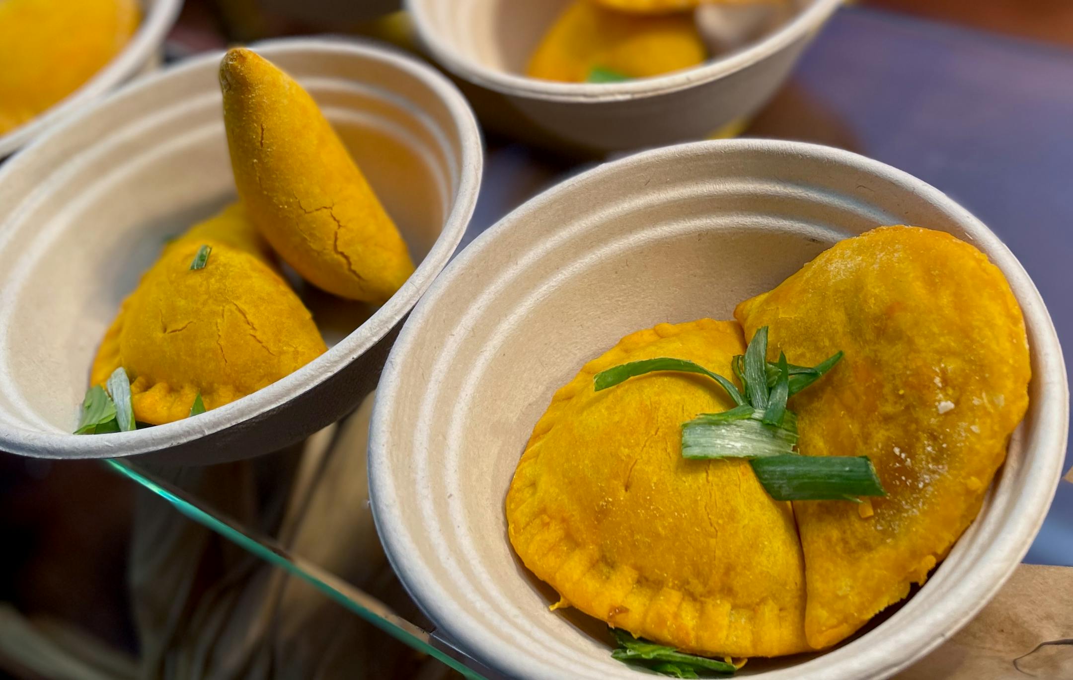 This is everything you want while celebrating an Anthony Edwards' dunk. One-handed eating leaves the other free to pump in the air. Bright yellow like a Lakers jersey, the flaky crust is wrapped around some legitimately spicy beef. This bite would also pair well with an ice cold beer.