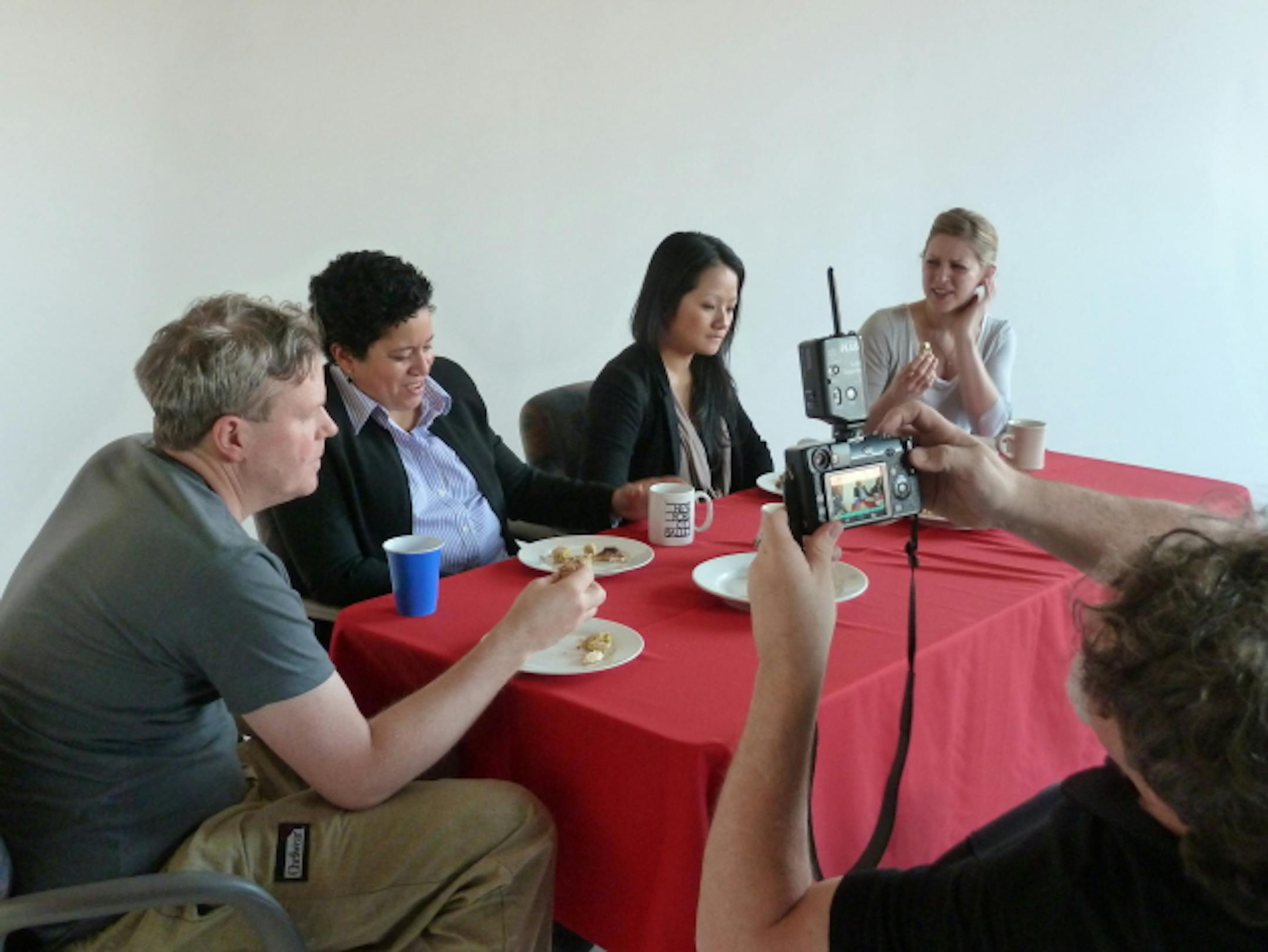 Steve Horton of Rustica bakery, Adrienne Odom of Parasole Restaurants, Diane Yang of La Belle Vie and Stephanie Schwandt of D'Amico Kitchen, pictured above, did just that as staff photographer Tom Wallace, also pictured, recorded the occasion. Find out which were the top three cookies next week (Nov. 29) in the Taste section, along with the winning recipes from this year's contest.