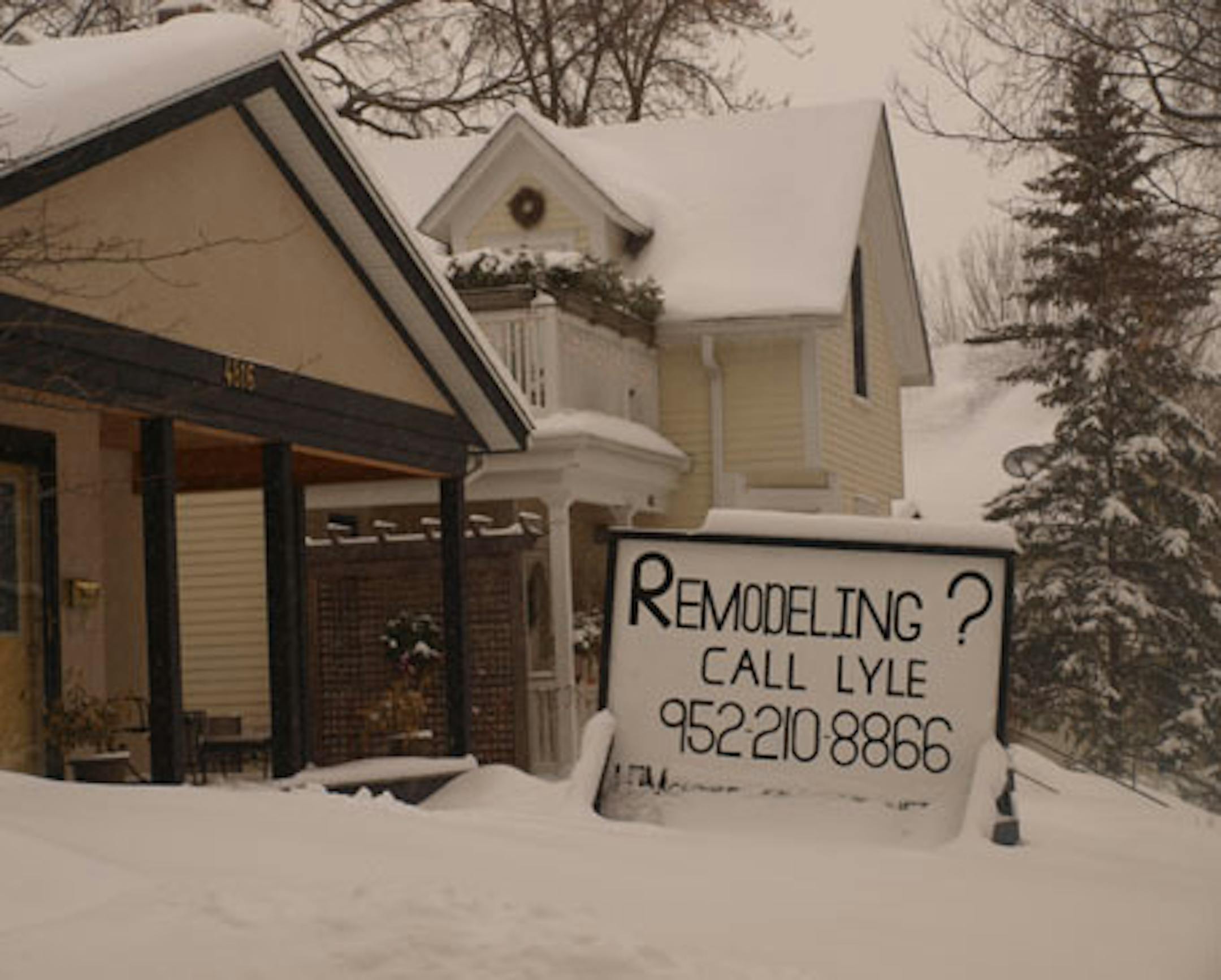 Which begs another question. People put signs in their yards all the time, extolling the work of whomever has just redone their roof, fence, landscaping, etc. (For the record, not me. Journalists don't.) But somehow, the size of this thing makes me fear that daily viewing will subliminally cause me to call to schedule a full bathroom renovation.