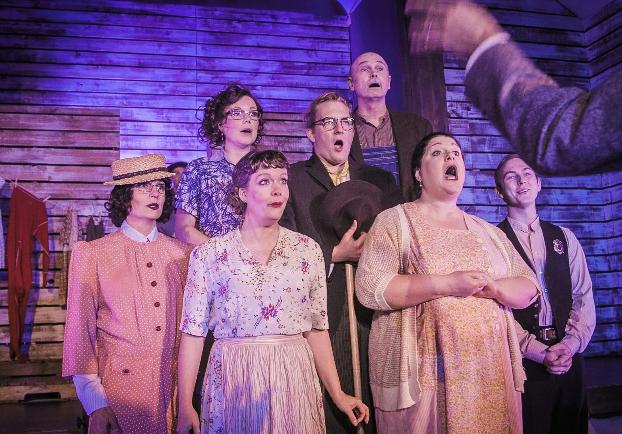 The folk, led by actors Pete Colburn and Bonni Allen, are all smiles and "amens" when the Rev. Sam Sr. thumps his Bible.