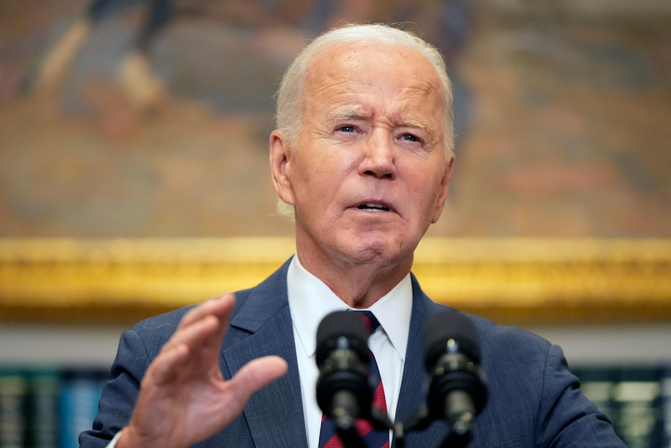 The president talked about the potential damage from Hurricane Milton and encouraged people near its path to seek shelter. Biden said the government had staged 20 million meals and 40 million liters of water in anticipation of the storm and that military units were ready with search and rescue teams to help victims of it.