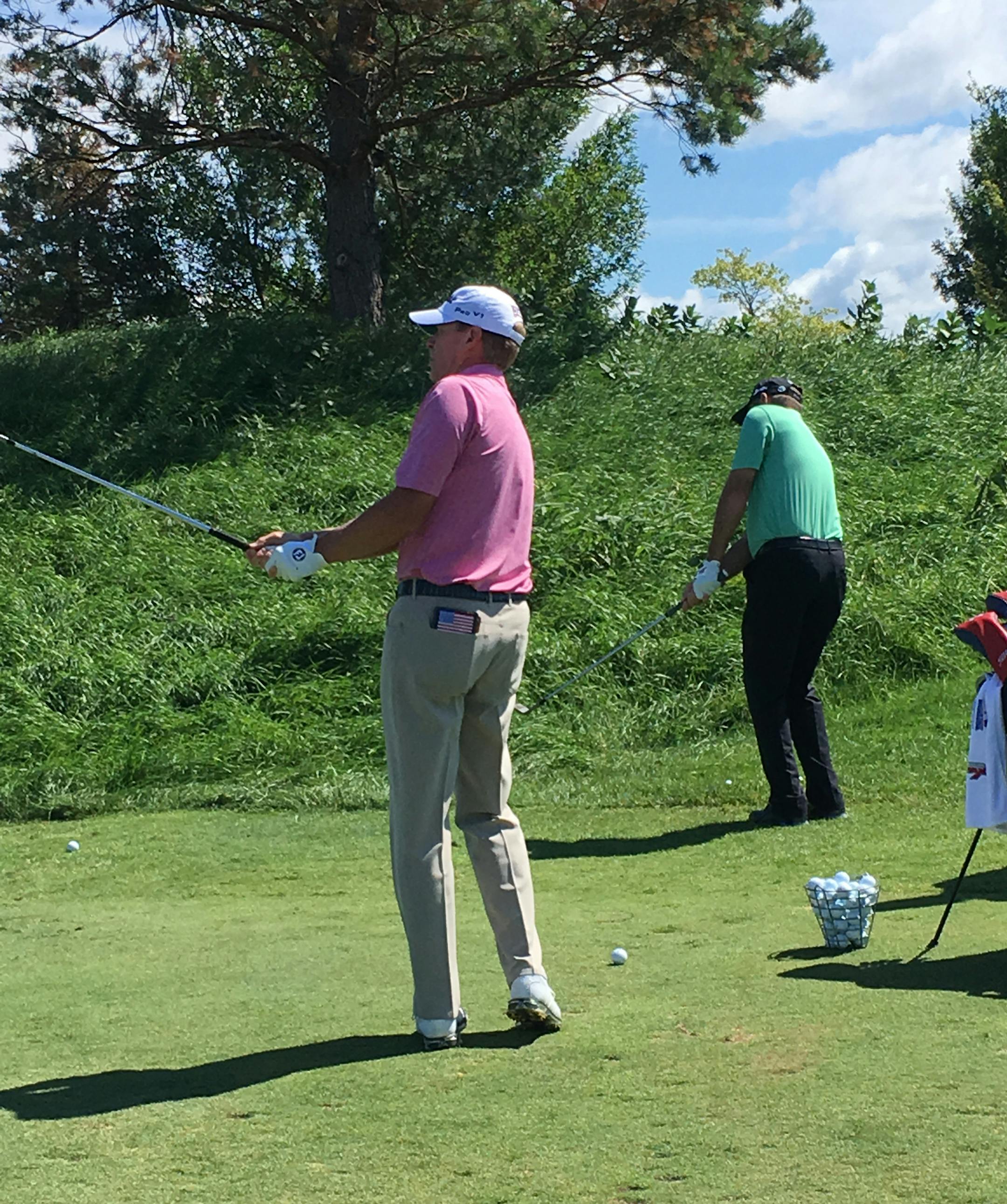 Fans gravitated to the driving range and the putting green to get a close up look at the players warning up for their rounds.