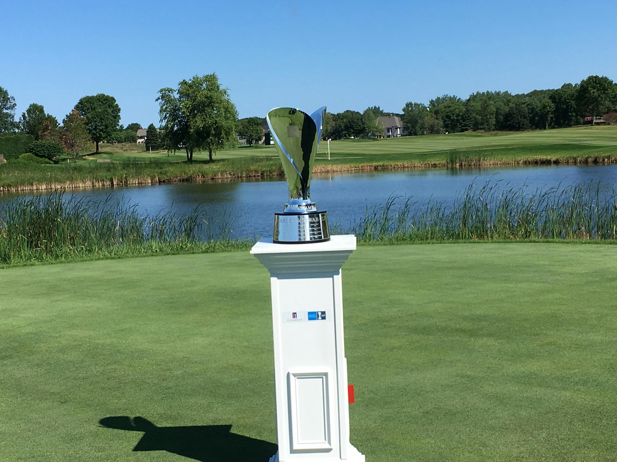 Under the watchful eye of the PGA Tour Champions Schwab Cup trophy, Bart Bryant hit the first shot at 11:10 a.m. and the day's play was off and running.