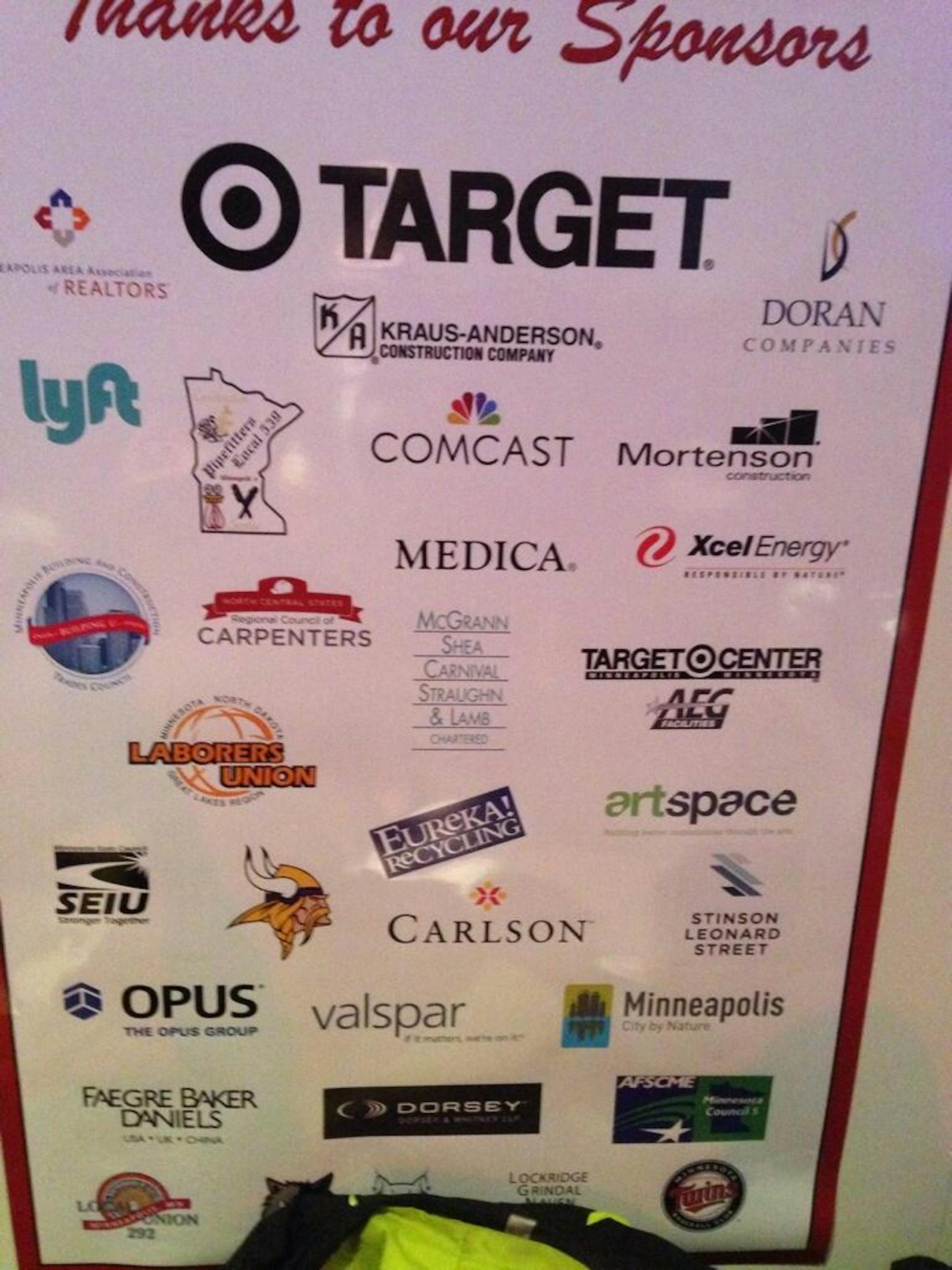 Seventeen donors contributed $5,000. They included the Minnesota Vikings, the Minnesota Twins, the Minnesota Timberwolves, Xcel Energy, The Opus Group (a developer), AEG Management, Doran Construction Company, Mortenson Construction and Meet Minneapolis.