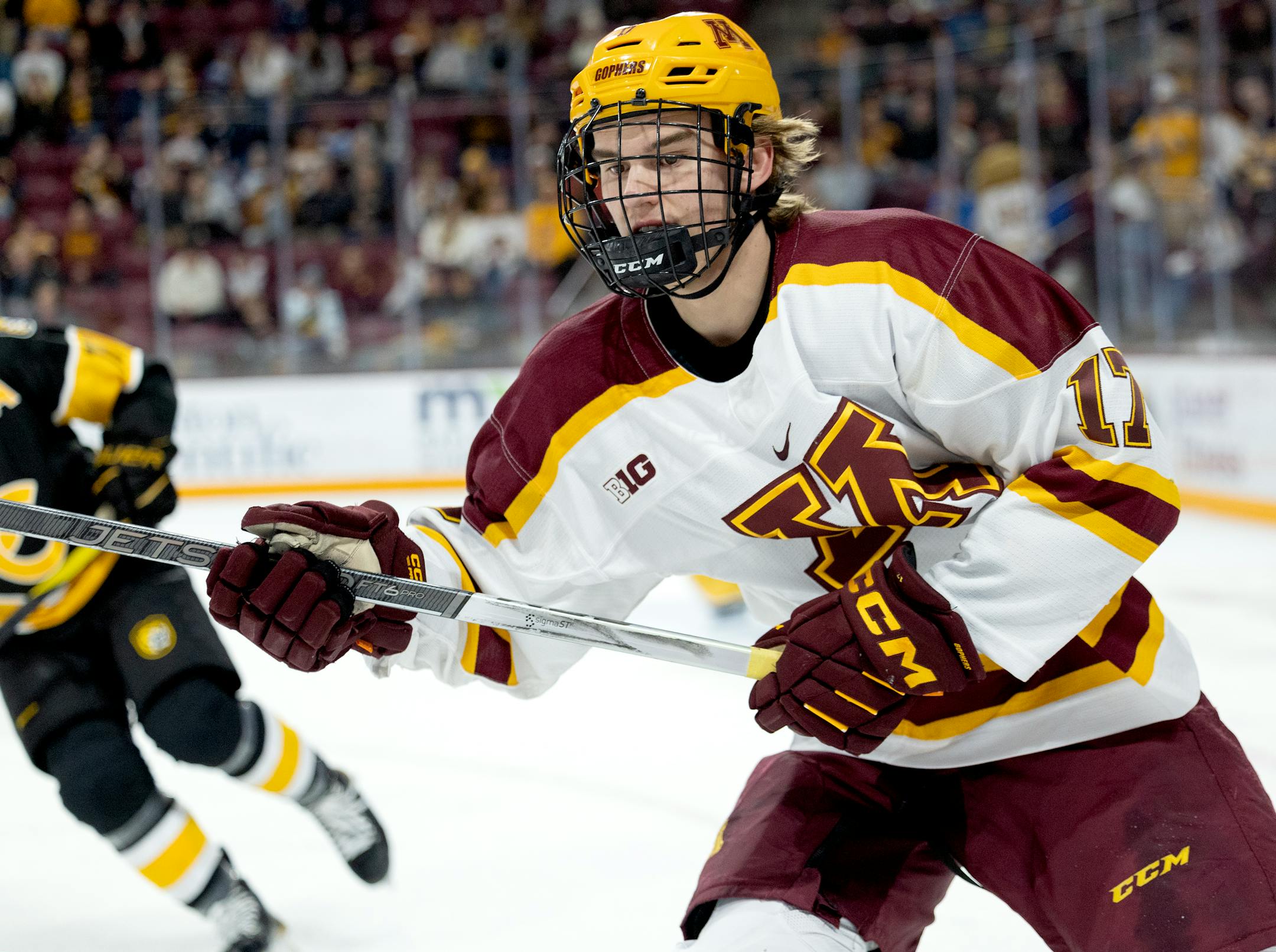 The Gophers took the lead for good 73 seconds into the final period on Max Rud’s first career goal. Midway through the third period, Leo Gruba extended the lead to 3-1, before Lamb scored with 5:04 remaining.
