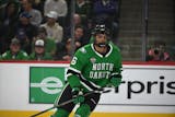 Tanner Ludtke’s power-play goal with 14:14 remaining in the first period put the Gophers ahead 1-0, but UND tied it three minutes later on a goal by Keaton Verhoeff.