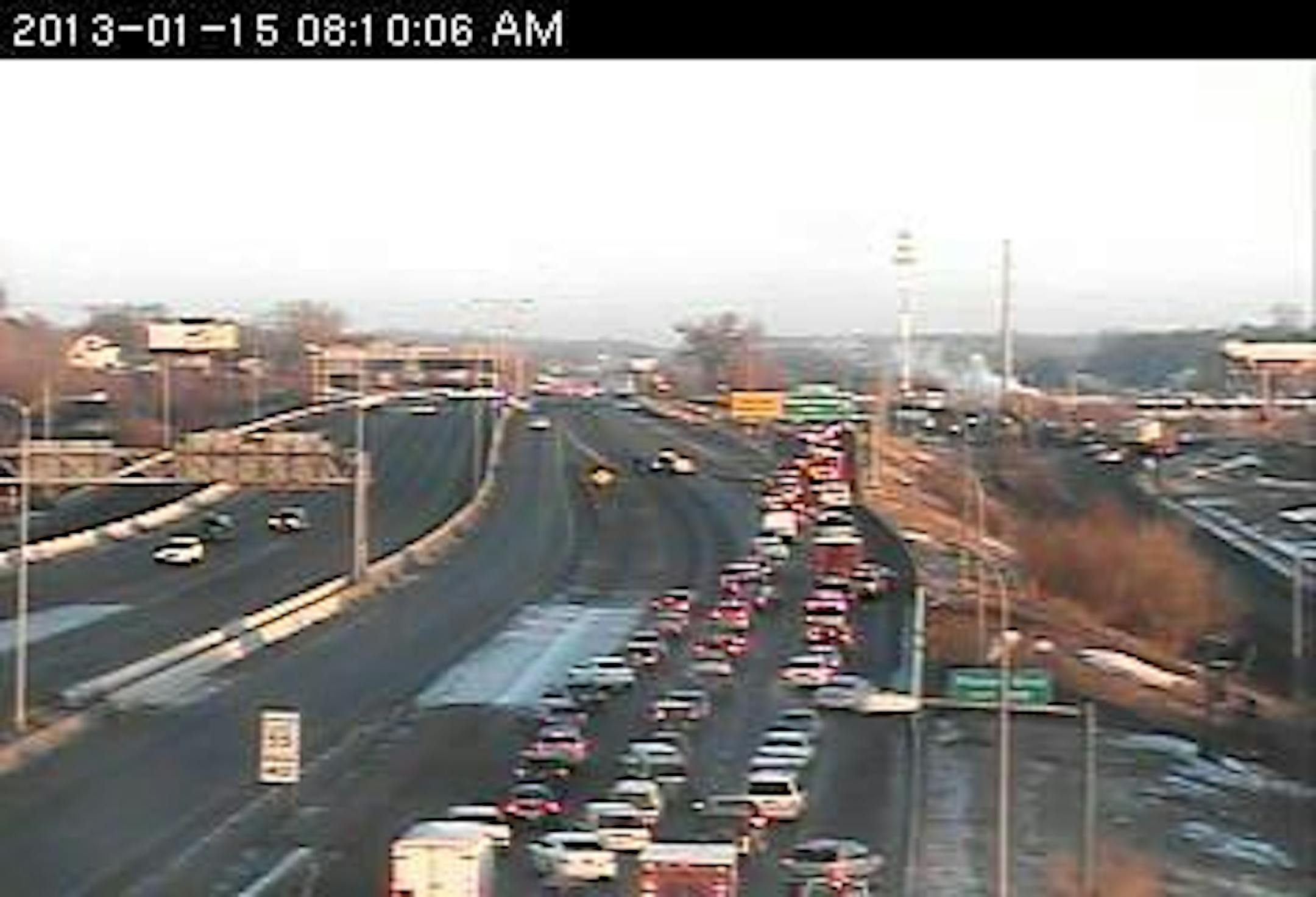 Traffic is backed up to 94, and traffic on westbound 94 is being impacted. Delays begin back at McKnight Road. The drive into downtown St. Paul will take 20 minutes or more.