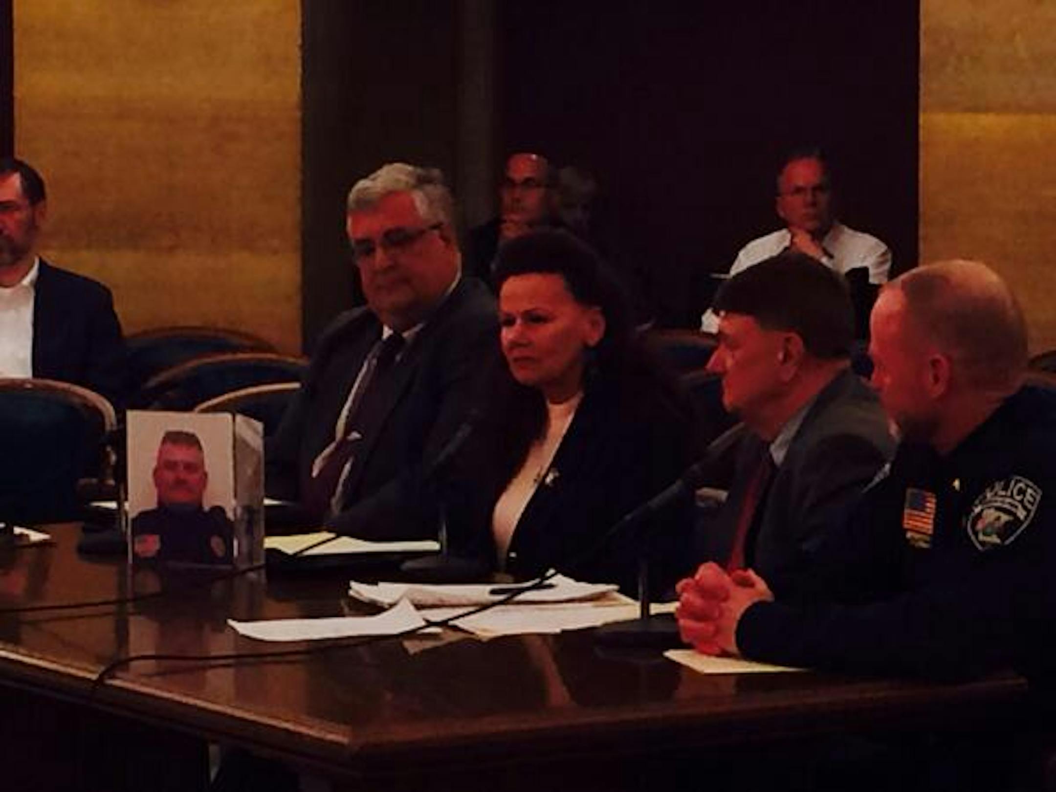 Christine Crittenden, center, testifies about her late husband, Richard Crittenden, to the Senate Transportation and Public Safety Committee.