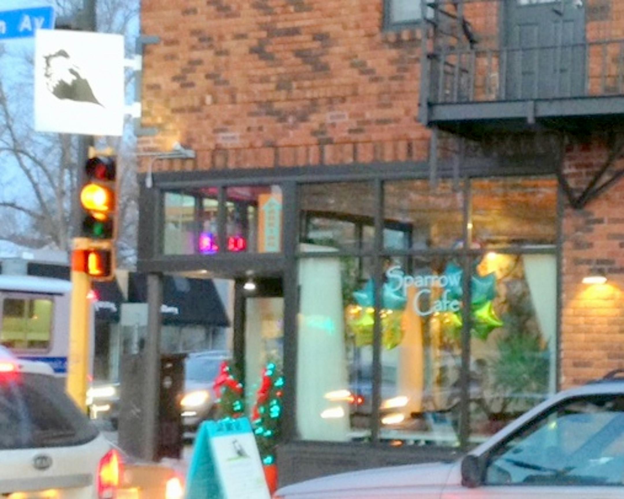 In the Sparrow Cafe, one wall is devoted to a stunning mural of birds and blossoms, done by the same people who did the cheetahs on the wall along the Hiawatha light rail line. The bakery case holds raspberry macaroons made with rosewater cream. But what's really eye-catching are the "Happy Anniversary" balloons floating in the window facing Penn Av. S.