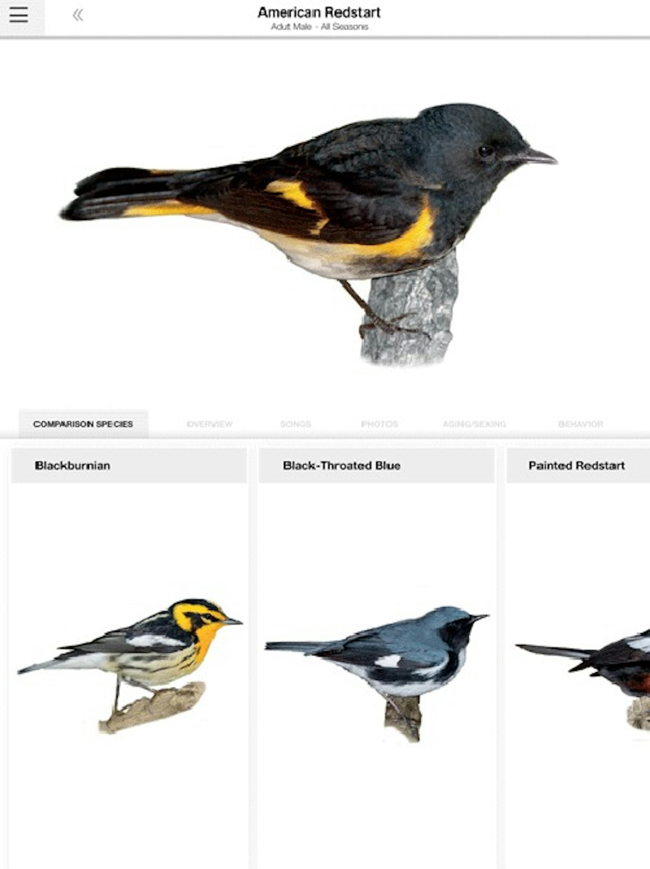 There are photos (not all in 3D, but photos from several angles) of male, female, and juvenile plumages. You can view similar species as you view your target bird, make comparisons quickly, on one page. There are photos to help you age and sex the bird. There is text to explain similarities and differences.