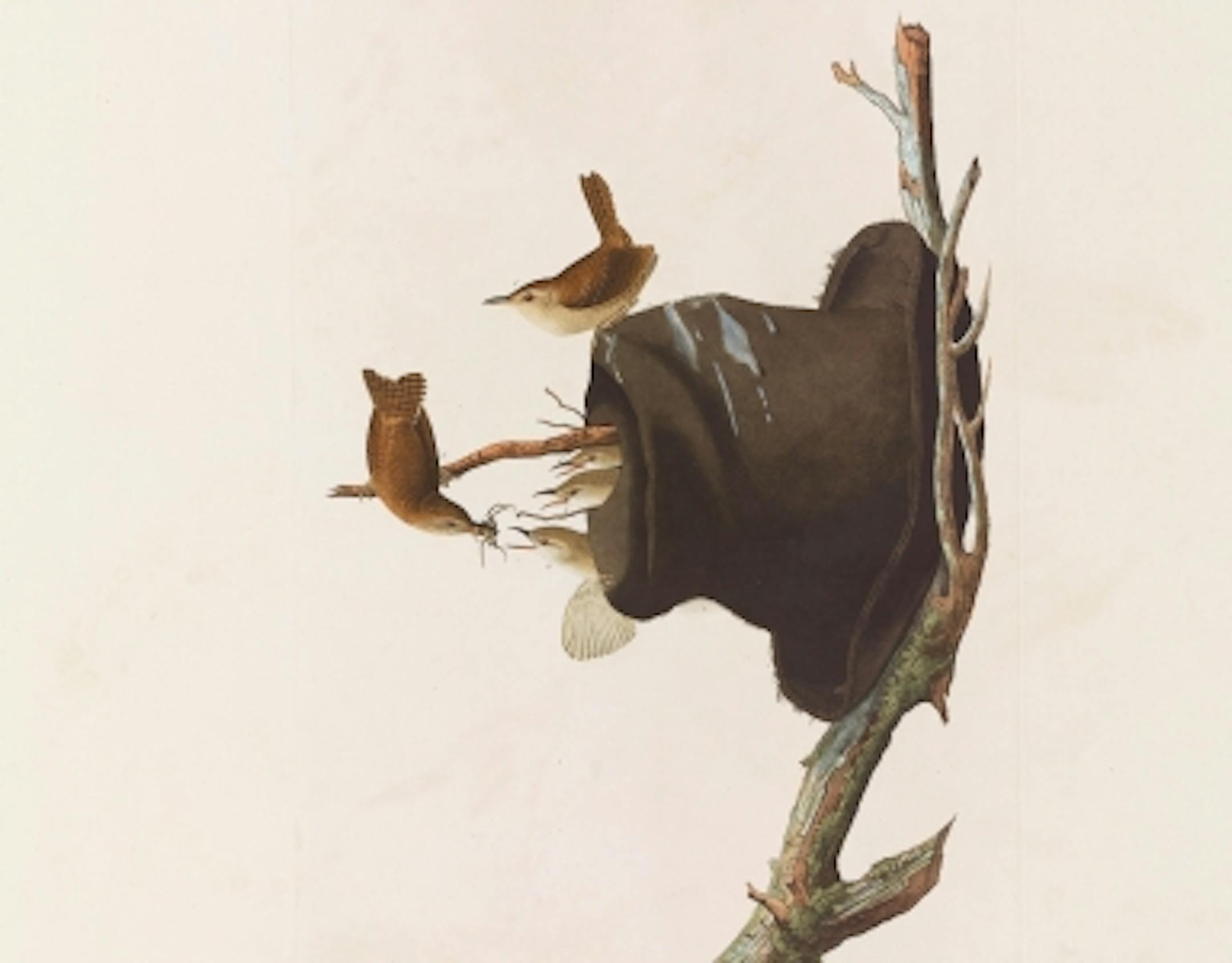 There's nothing subtle or static about an Audubon painting, filled with details that tell a species' story. The Bell show features Audubon's shrikes squabbling over the mouse held by one bird; in another, electric with energy, an Arctic tern plunges dramatically from the air into the sea. In one of Audubon's more famous works, a brilliant red flamingo sieves along a shoreline for food. All birds are depicted life-size (he bent the flamingo into an awkward posture to fit on the page), and so true-to-life that his paintings are as much science as art.