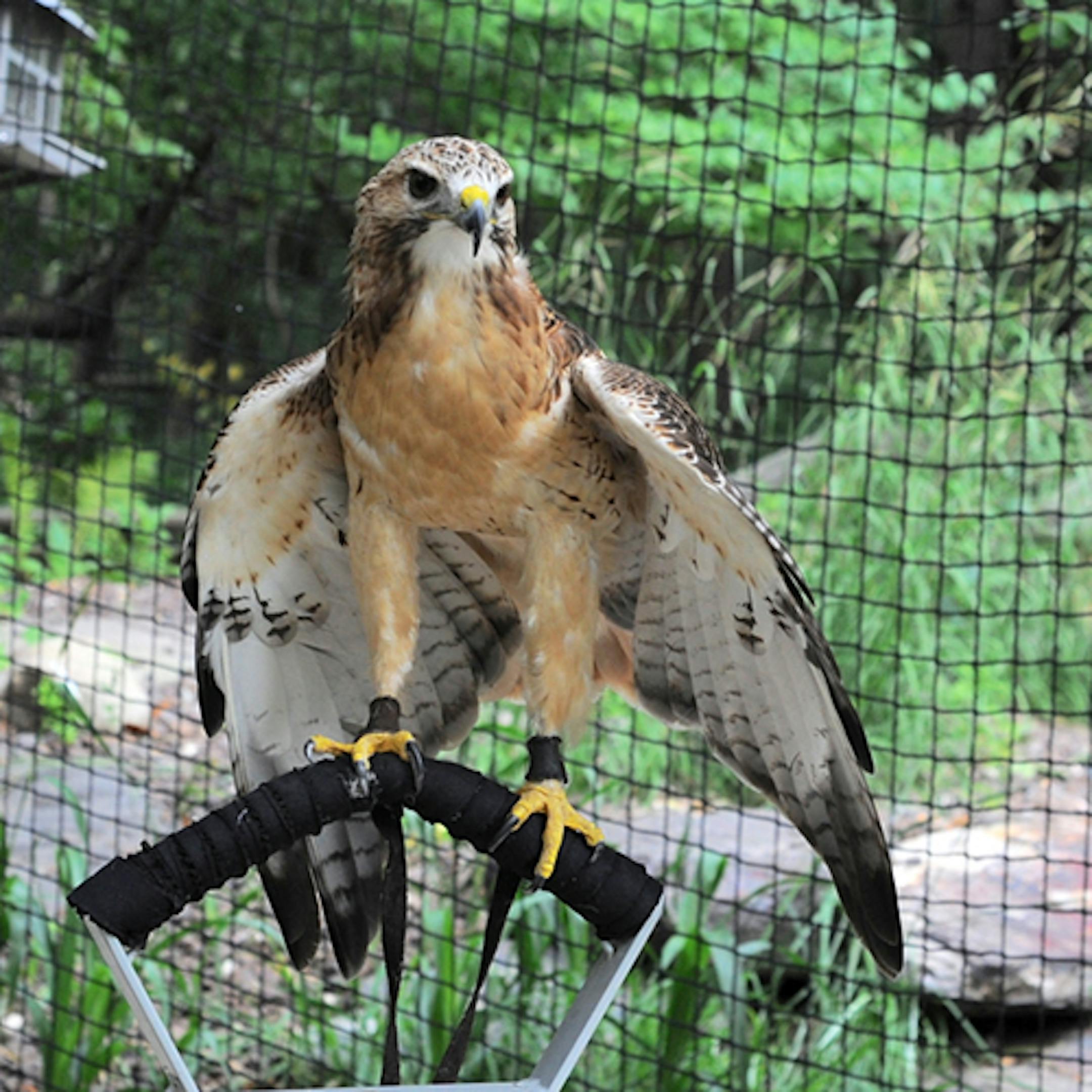 The photos show birds in various heat-related reactions. The Red-tail Hawk at Westwood Nature Center in St. Louis Park is doing what many birds do on hot days: opening up and letting the air in. The bird is exposing as much body area as it can. The hawk, unable to care for itself in the wild, was photographed in a large shaded outdoor aviary at the center. It's a beautiful bird. The Lark Bunting was trying to keep cool the same way. This bird was photographed on a South Dakota grassland on a day when the temp was over 100 degrees. It was close to midday, shade at a minimum. Fence posts did offer about three inches of shade on the north side. Buntings and meadowlarks were using that shade, perching tight against posts.