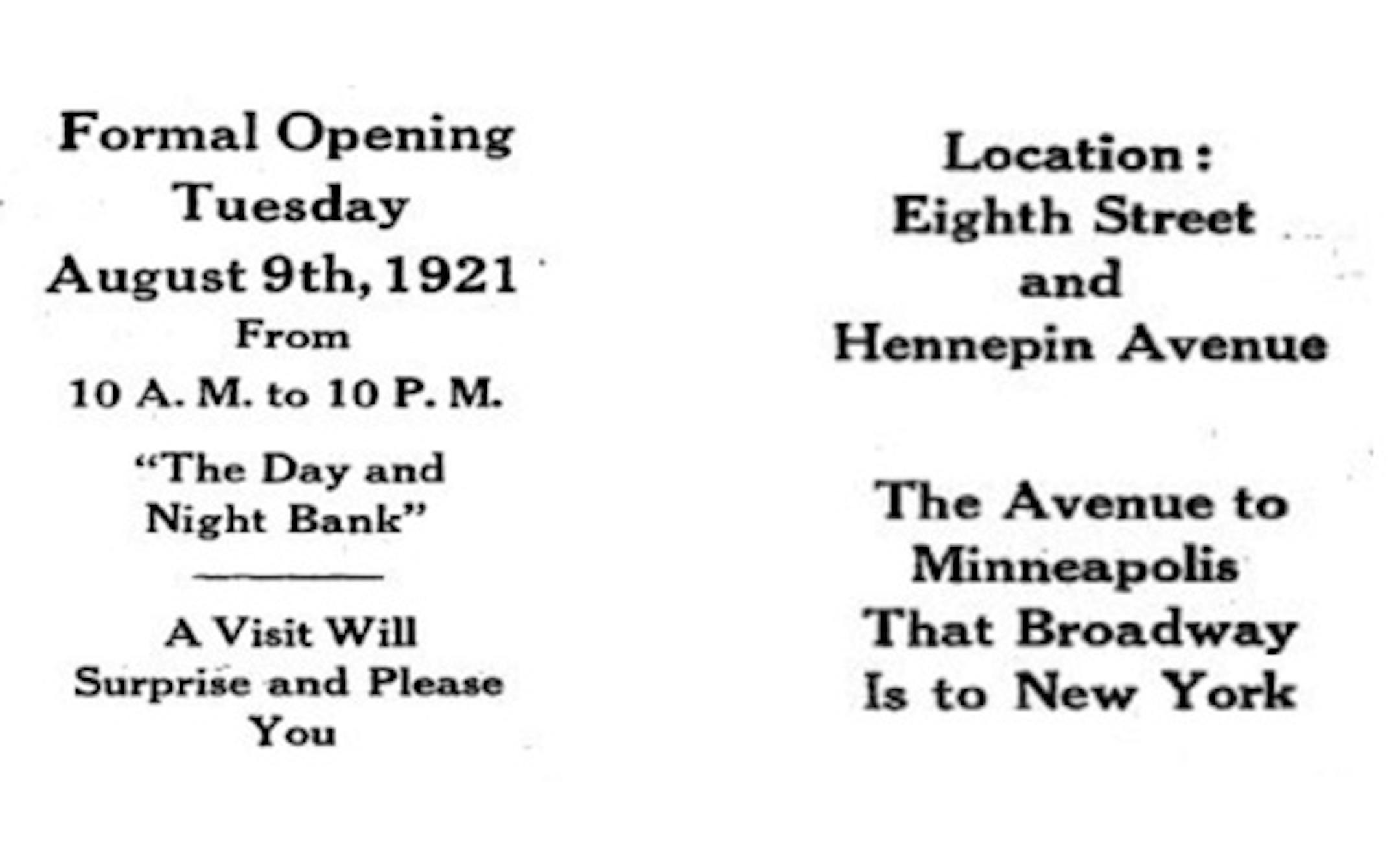 "The Avenue to Minneapolis That Broadway Is to New York." There's a slogan that didn't catch on as intended. Not the date: 1921. Wikipedia says: