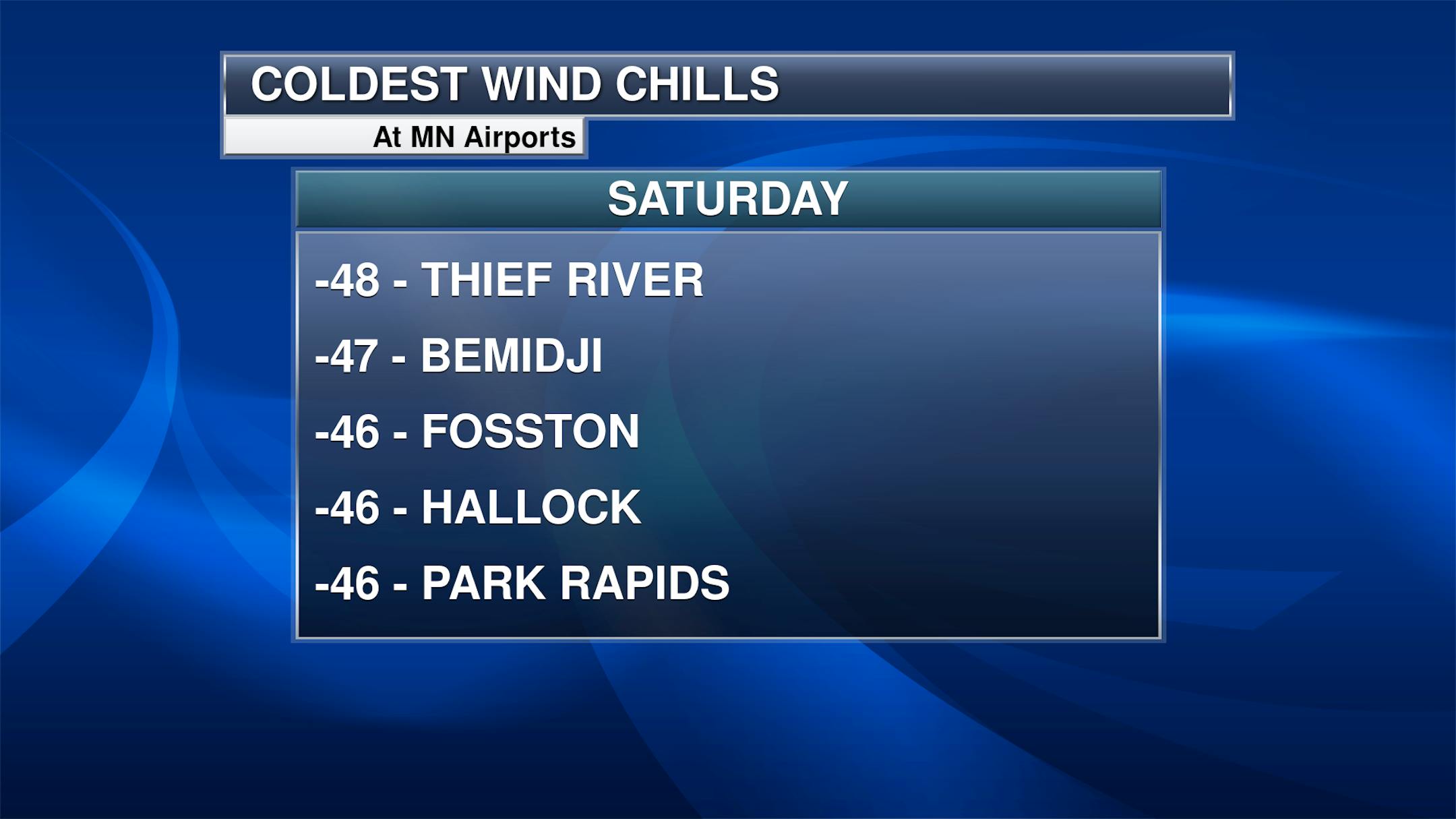 Lows, Highs, And Wind Chill Readings From Saturday