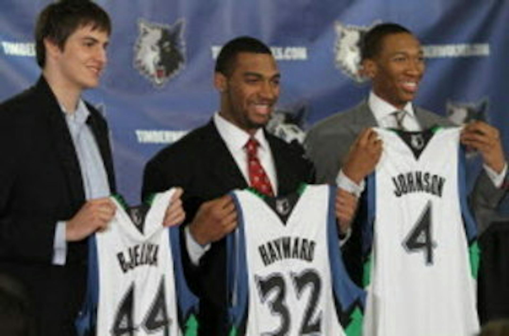 Bjelica with 2010 draft choices Lazar Heyward and Wesley Johnson. File photo.