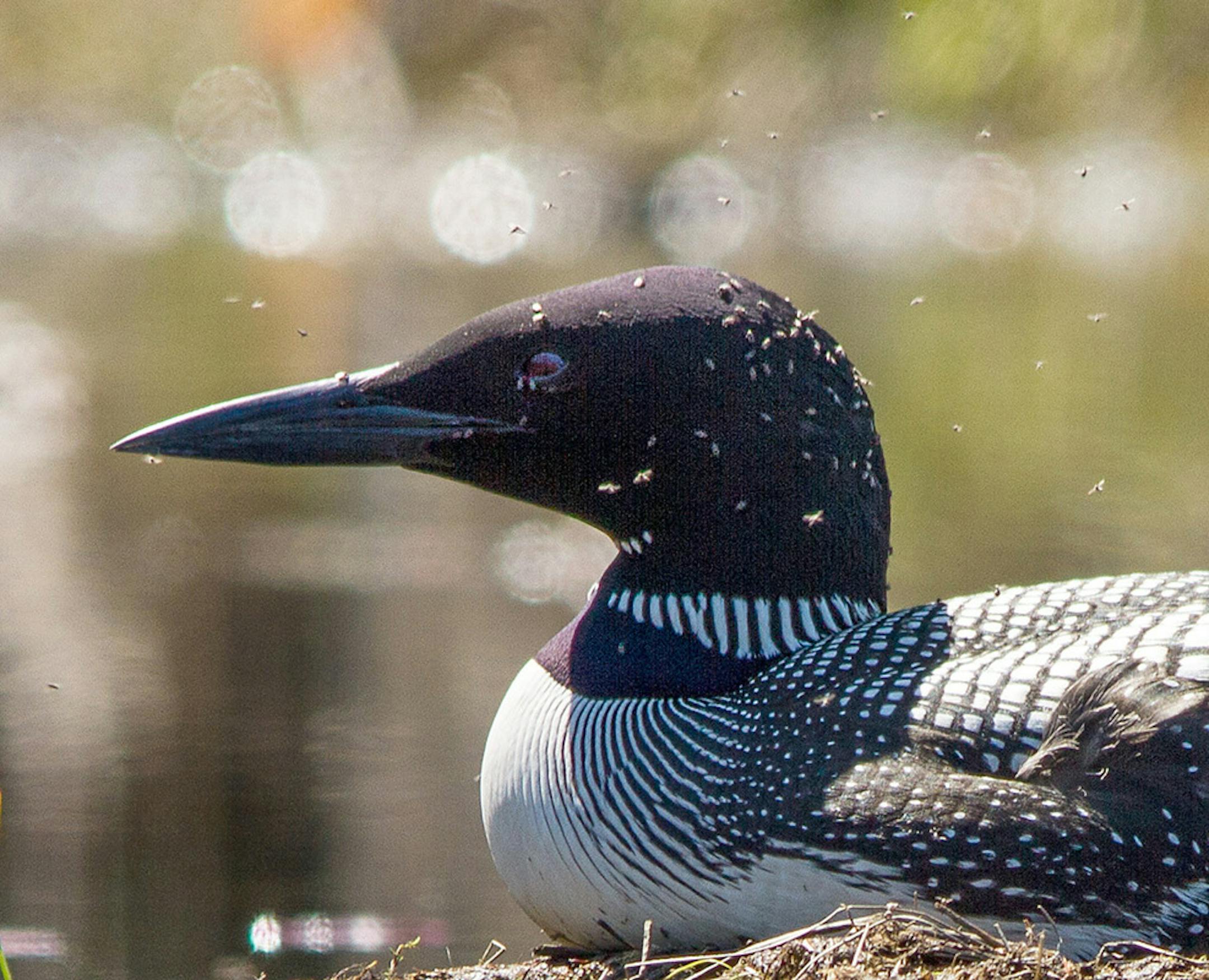 Common loons have joined whooping cranes as iconic birds under attack by black flies this year. The tiny, voracious, biting insects are driving those birds off their nests, exposing eggs to loss.