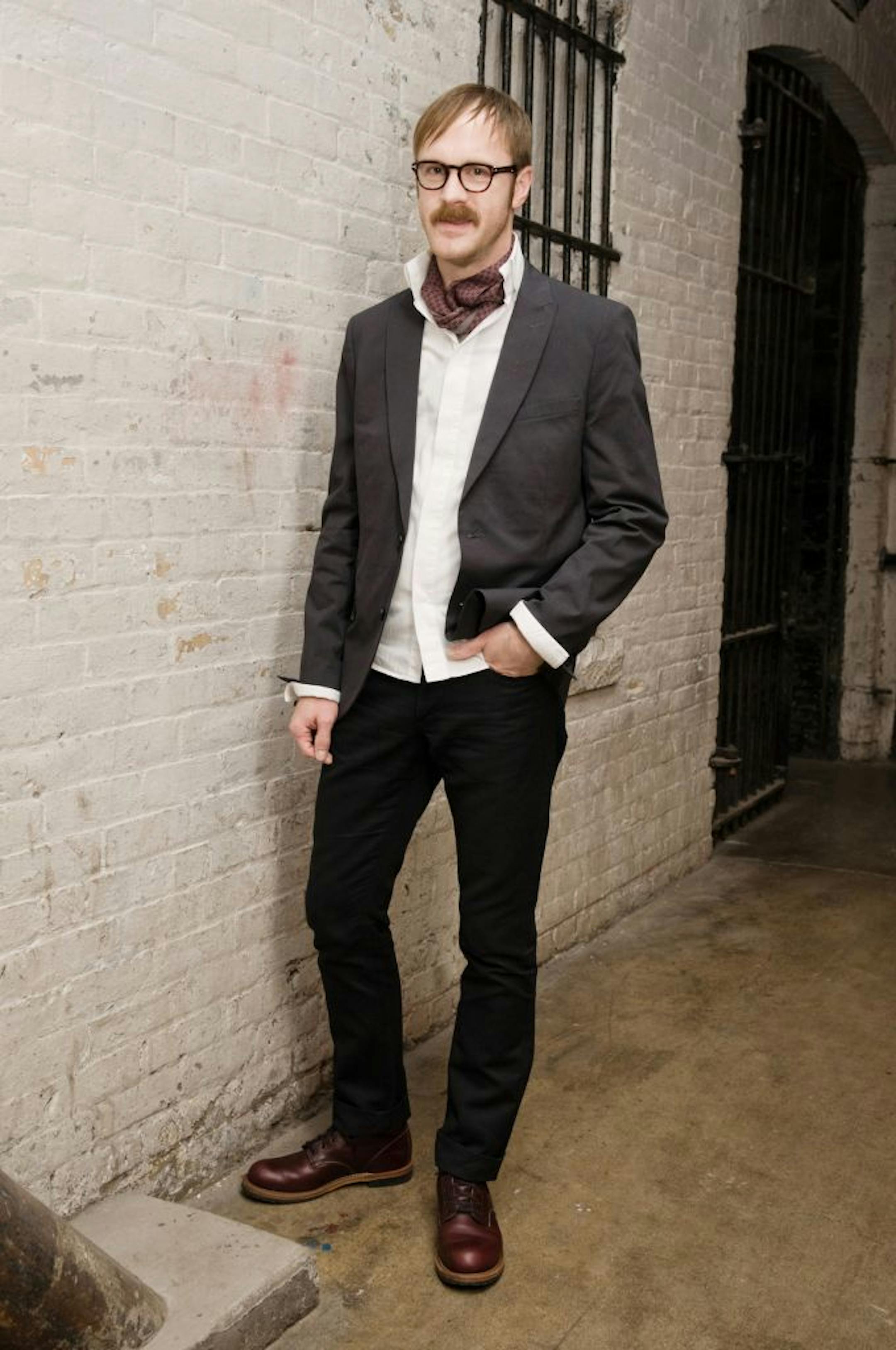 What are you wearing? Tom Ford eyeglasses, Cold Method blazer, Karl Lagerfeld shirt, Hermès silk scarf tie, Burberry pants, Red Wing Beckman boots.