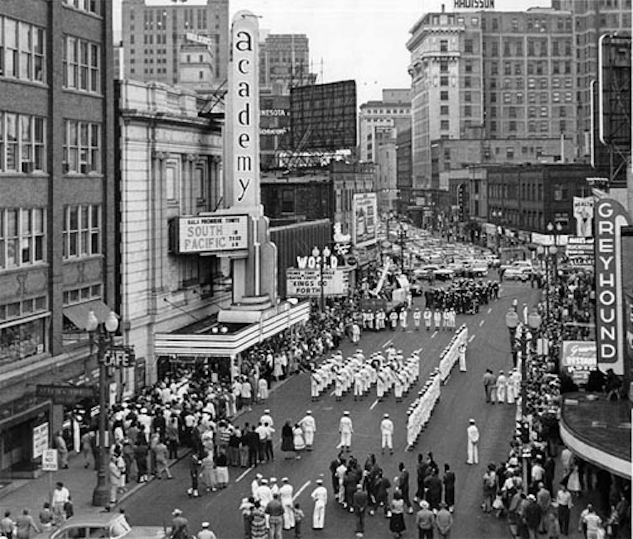 MPLS The movie theater in Block E is closing. Big surprise. What to do with the space? I don't know. Rent it out for paintball battles. The fate of this structure is a long, boring, tiresome subject, and you know the one thing that needs to be done - tear it down - is the last thing they'll ever consider. Now there's talk of confining retail to the ground floor, where a few establishments do fine, and turn the space above into offices. Whatever. As long as we've learned our lesson. This is what they demolished: