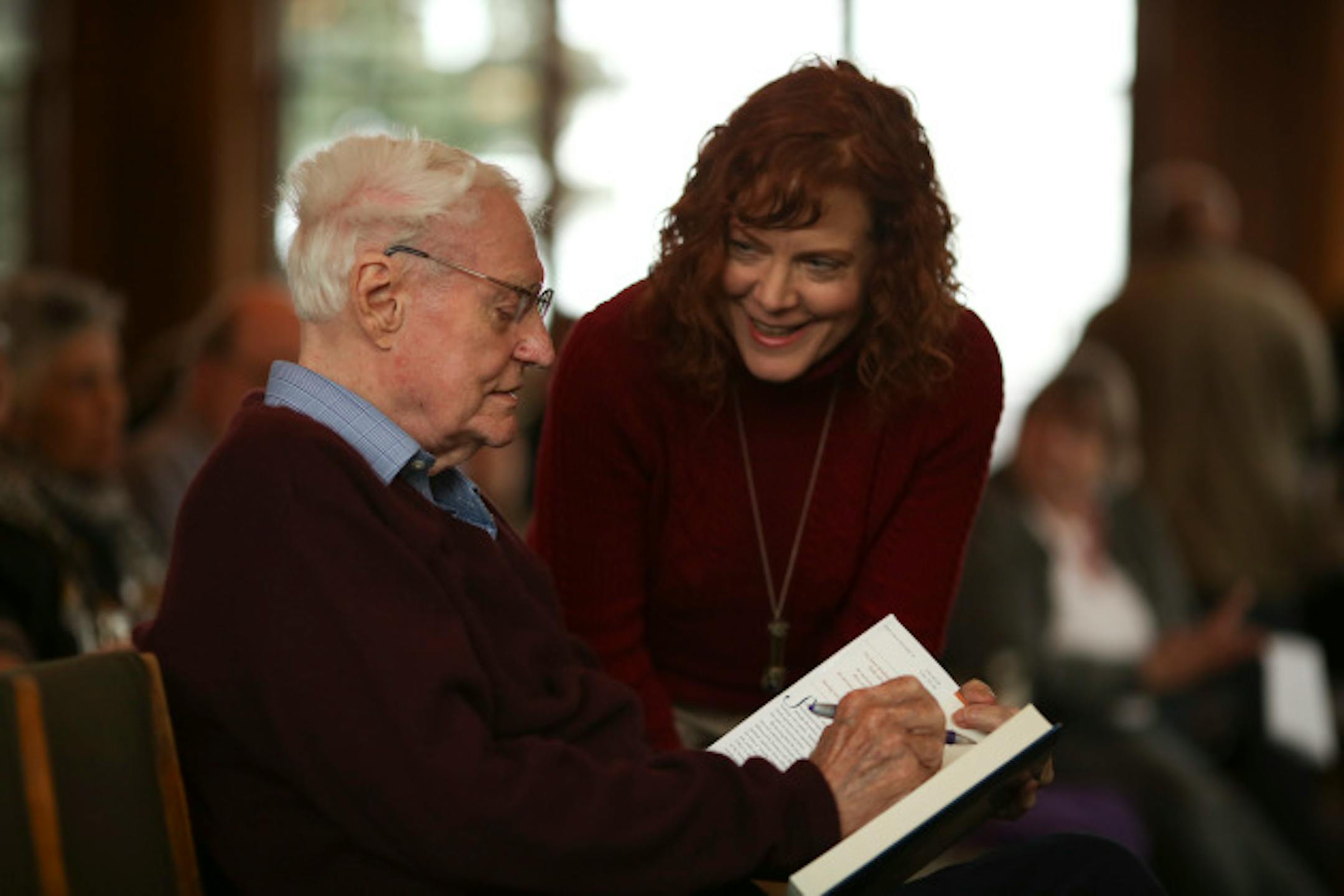 Manfred read a poem about the eye of a loon, telling the audience that Bly had influenced her last line, suggesting she remove one word, "dreadful." She shook her head, in amazement at herself for writing it that way in the first place, perhaps, or in amazement at Bly for the catch. "He was right about that last line," she said.