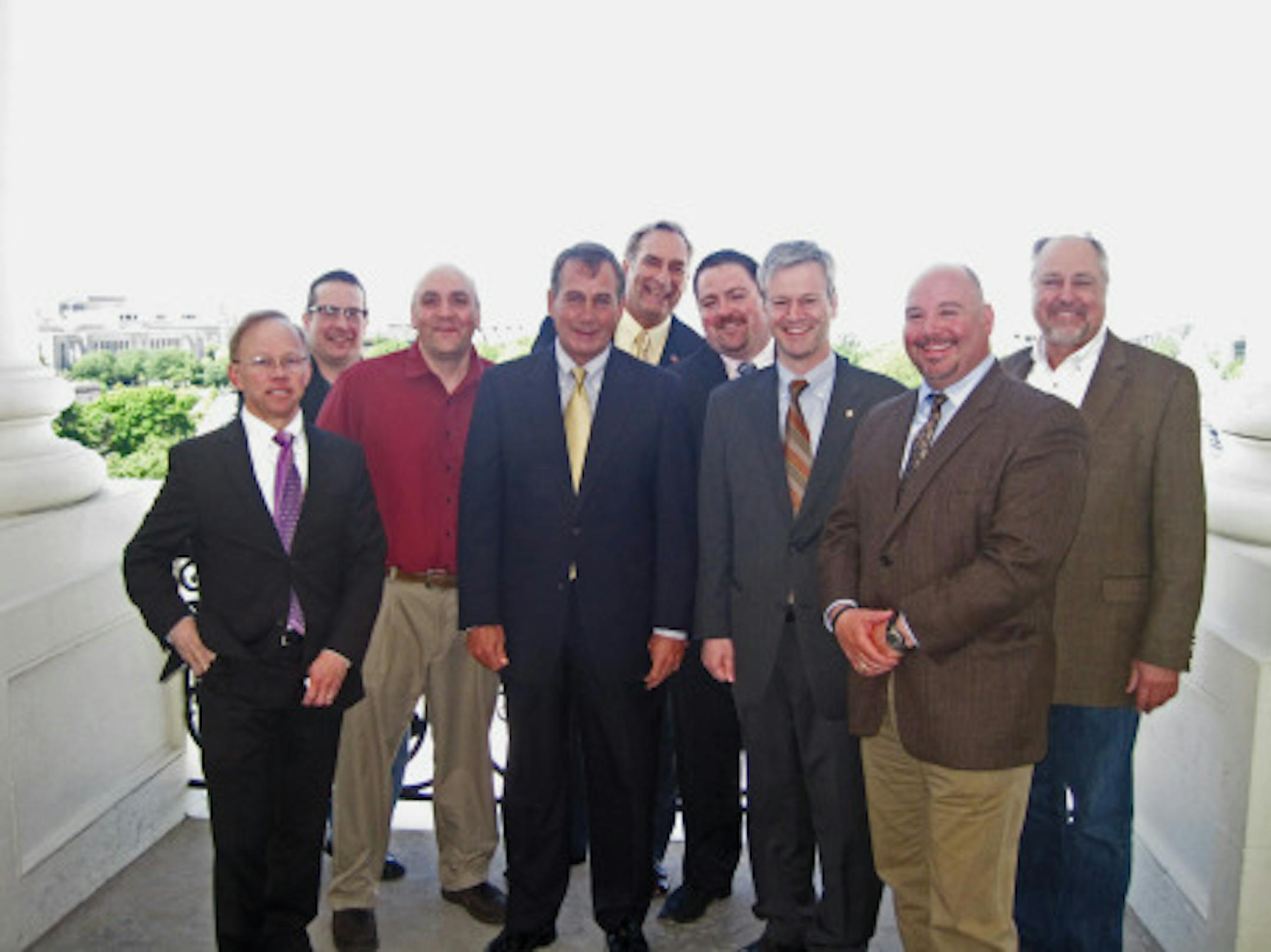 So far, we know two things about House Speaker John Boehner. He tears up at the drop of a Cannoli. And when he comes to Minnesota, he eats at Mancini's Char House & Lounge on West Seventh Street in St. Paul. On Thursday, co-owner John Mancini and a group of Minnesota business leaders returned the favor, dropping in on the Ohio Republican's office bearing gifts of an apron and a Mancini's cap. The apron was inscribed "Serving our Troops," representing the group's work providing down-home delicacies to Minnesota National Guard soldiers and their families. The group was in D.C. meeting with the Minnesota congressional delegation. Shepherding them was Minnesota lobbyist Dennis McGrann of the Lockridge Grindal Nauen law firm. And McGrann, the quintessential Washington insider, has connections to the Speaker's office. "It reminds him of home," McGrann said of Boehner's affinity for Mancini's, which the then-future Speaker discovered during the 2008 Republican National Convention in St. Paul. True enough, the elegant, old-world eatery has the same Frank Sinatra-Rat Pack feel one imagines from Boehner's younger days sweeping the floors at his family's bar in Cincinnati. Joining the group was St. Paul City Council Member Pat Harris, a Democrat. "We're ecumenical at serving our troops," said Ted Davis, the group's publicist. Also in attendance, (from left to right, in the photo above): Ted Davis, of Davis Communications; Dave Titus, Saint Paul Police Foundation; John Mancini, Mancini's Char House; Speaker Boehner; Dick Leitner, Saint Paul Fire Fighters Local 21; John Marshall, Xcel Energy; St. Paul City Councilman Pat Harris; Dan O'Gara, O'Gara's Bar and Grill; and John Tinucci, of Tinucci's in Newport.