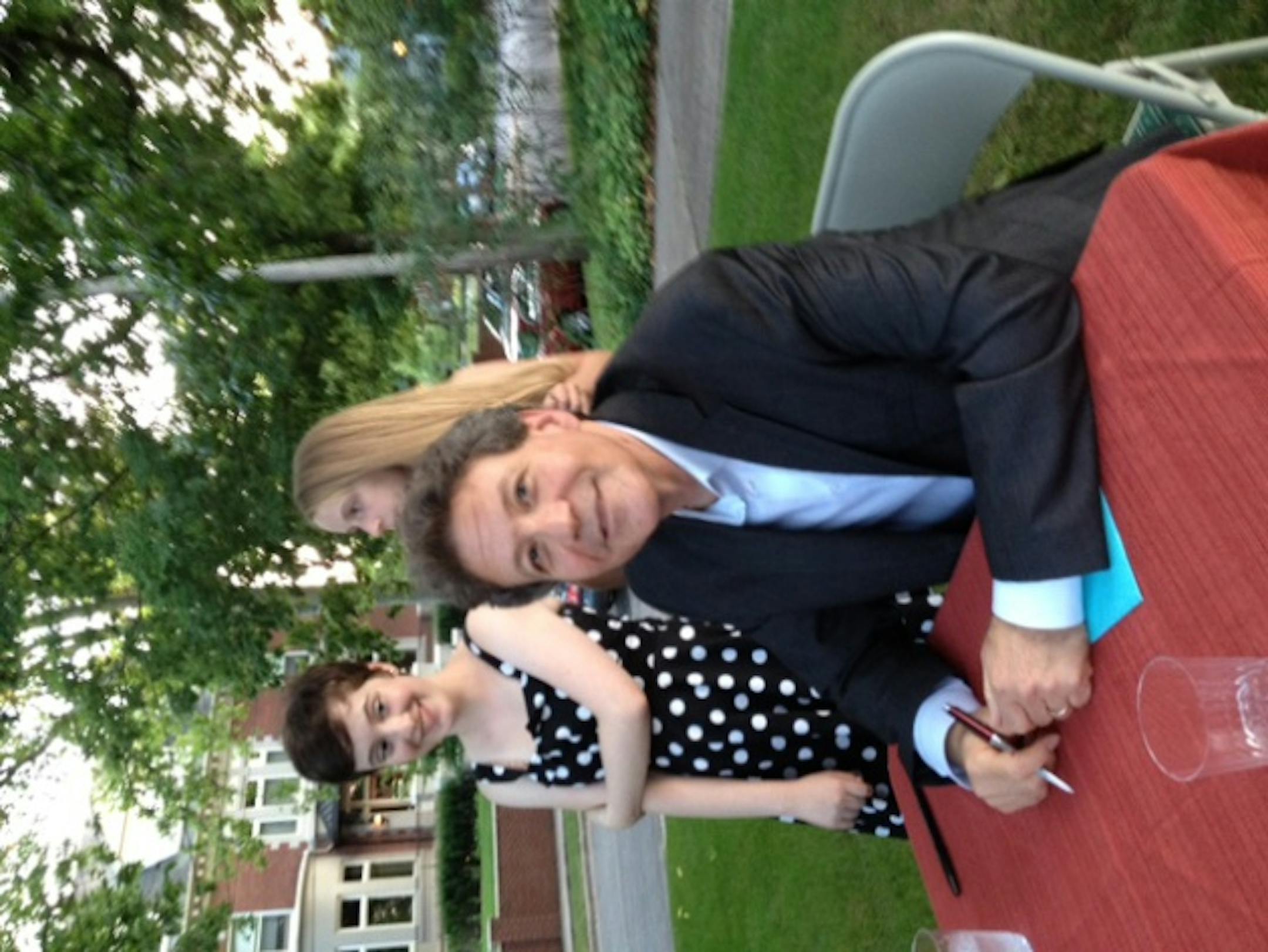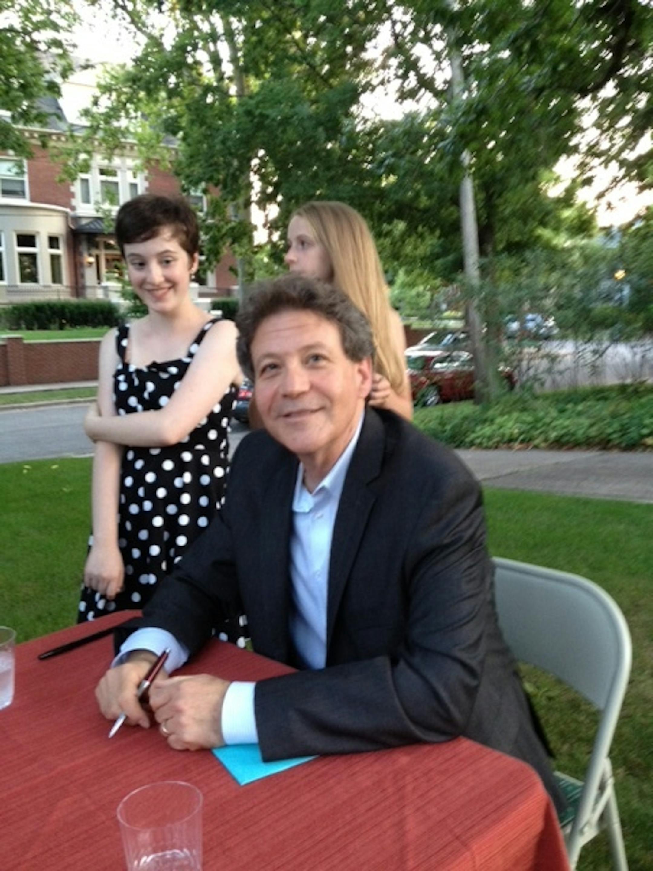 Jack El-Hai signs books outside the Donaldson mansion on Mt. Curve. Photo by Claude Peck.
