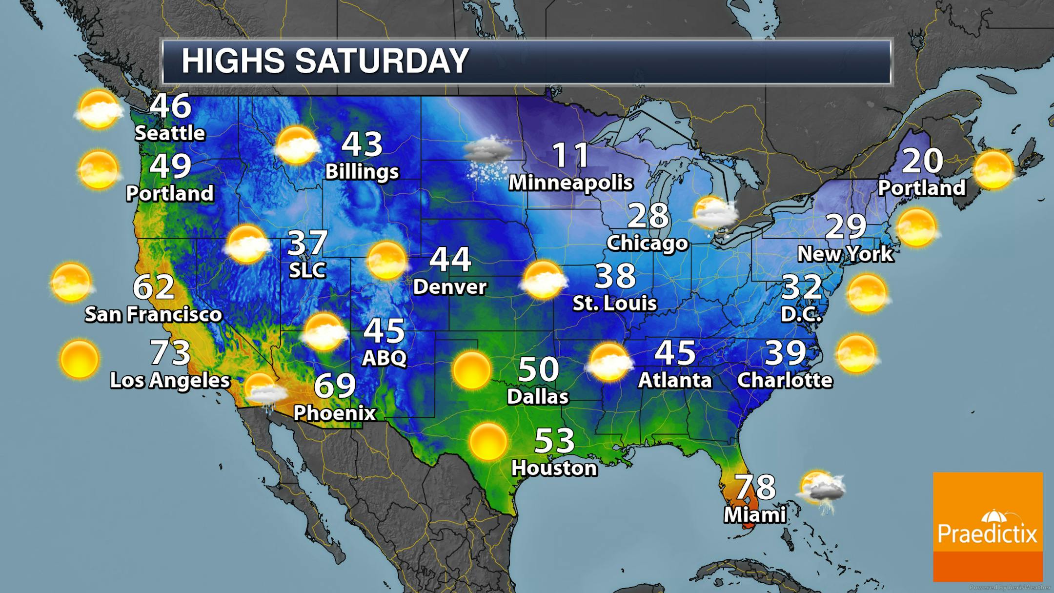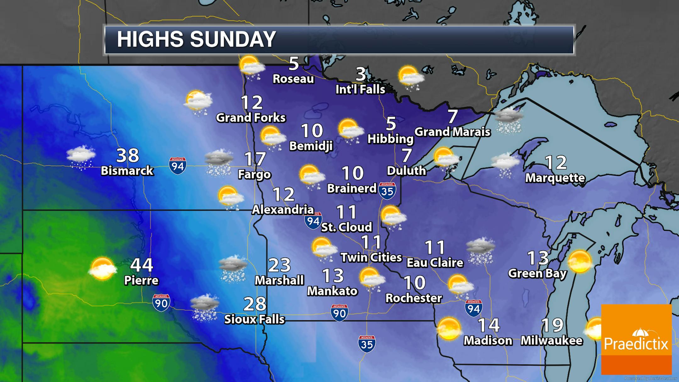 On Sunday we will be watching that third batch of snow for the weekend moving in as we head late in the day into the overnight hours. It'll be another cold day - even though most locations will be a few degrees warmer than Saturday - with highs mainly in the single digits and teens.