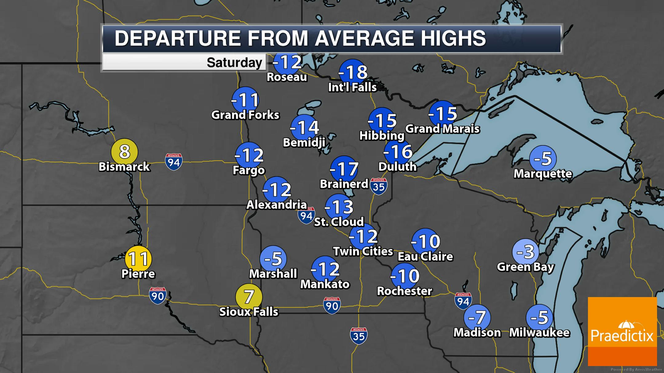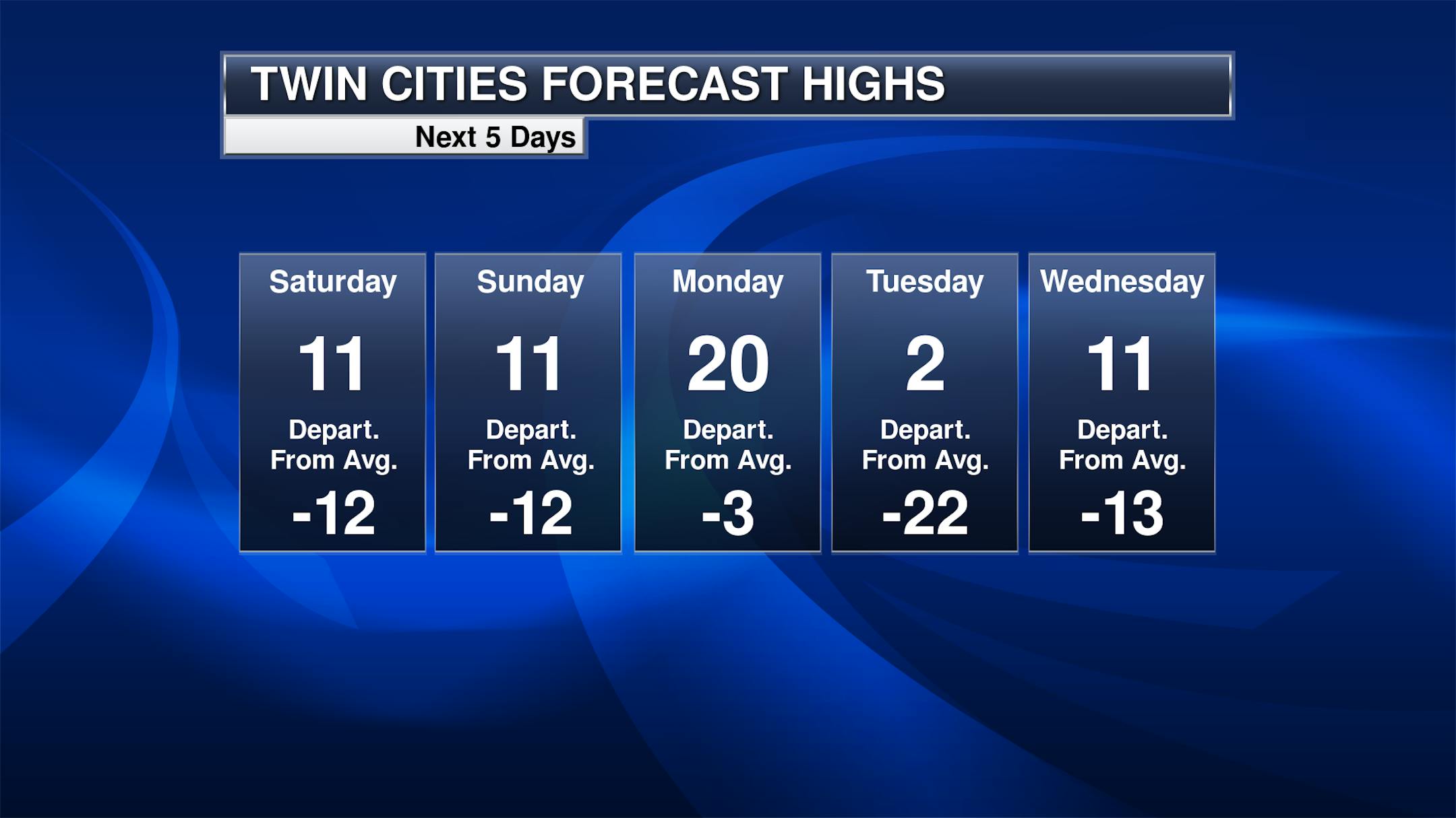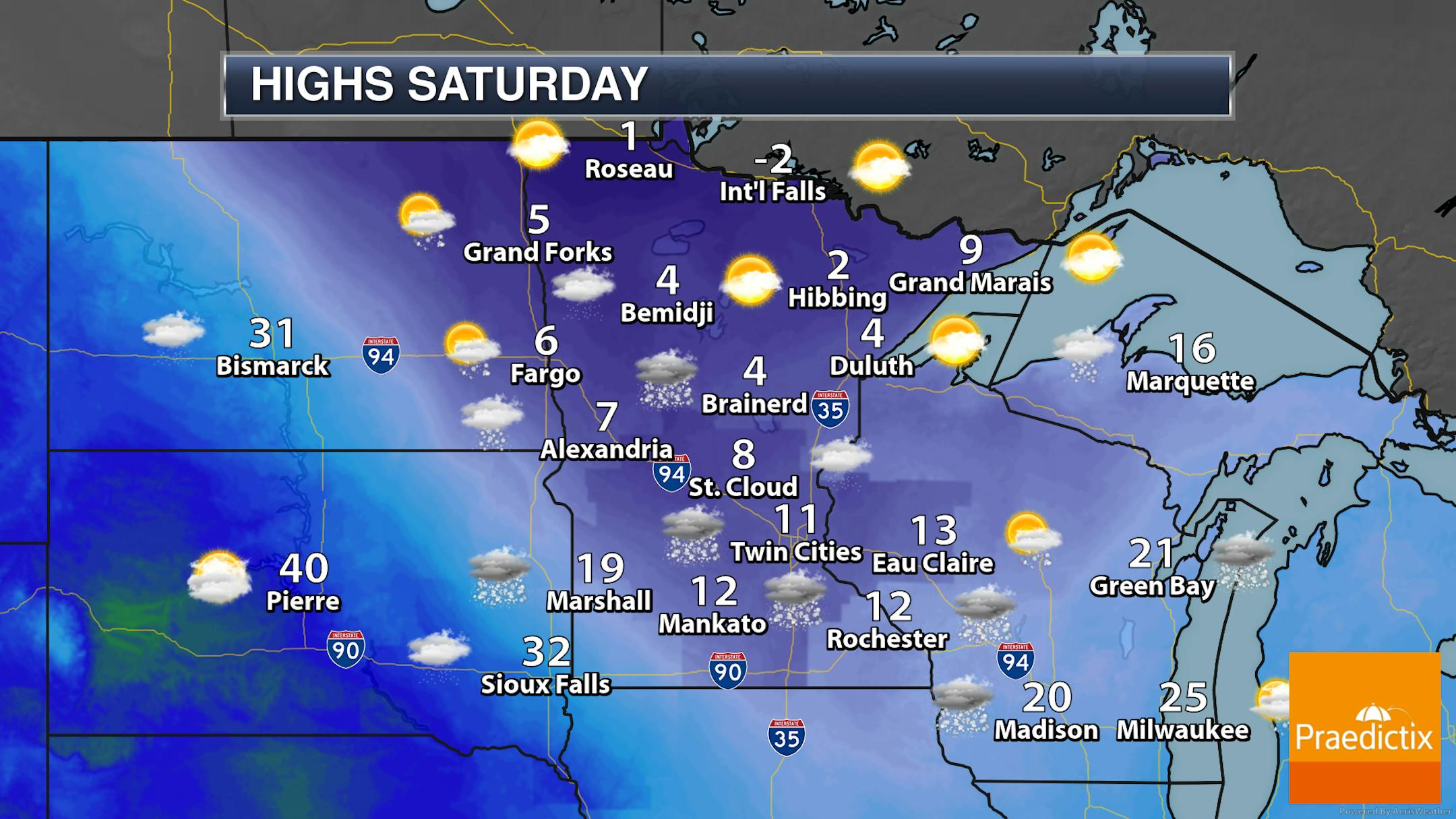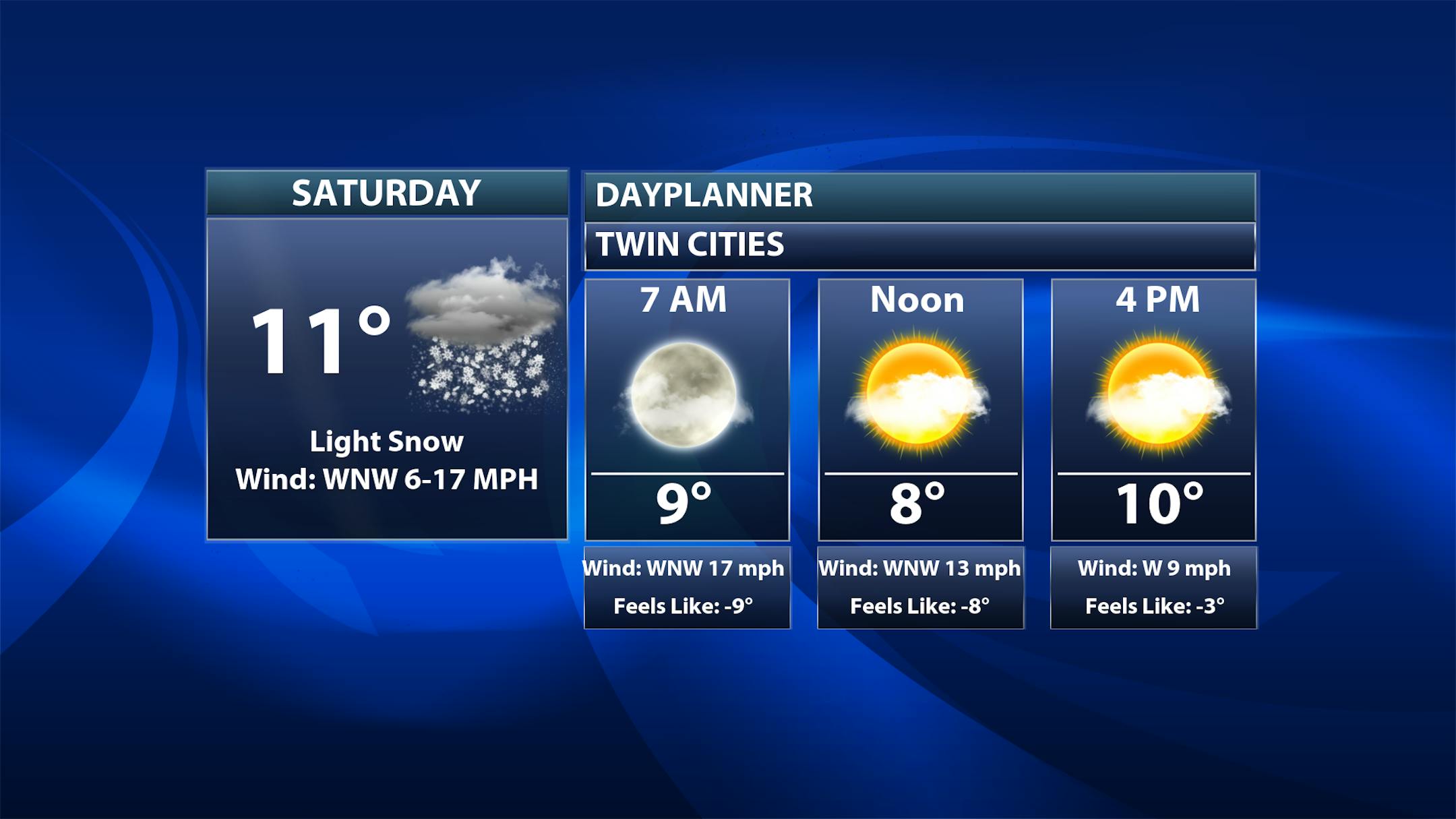 Looking statewide, we watch any lingering snow showers from Friday Night quickly moving out into Saturday, but we watch that next snow chance start moving into western Minnesota during the mid/late afternoon hours. Highs will be below zero across portions of northern Minnesota, and in the single digits and teens elsewhere.