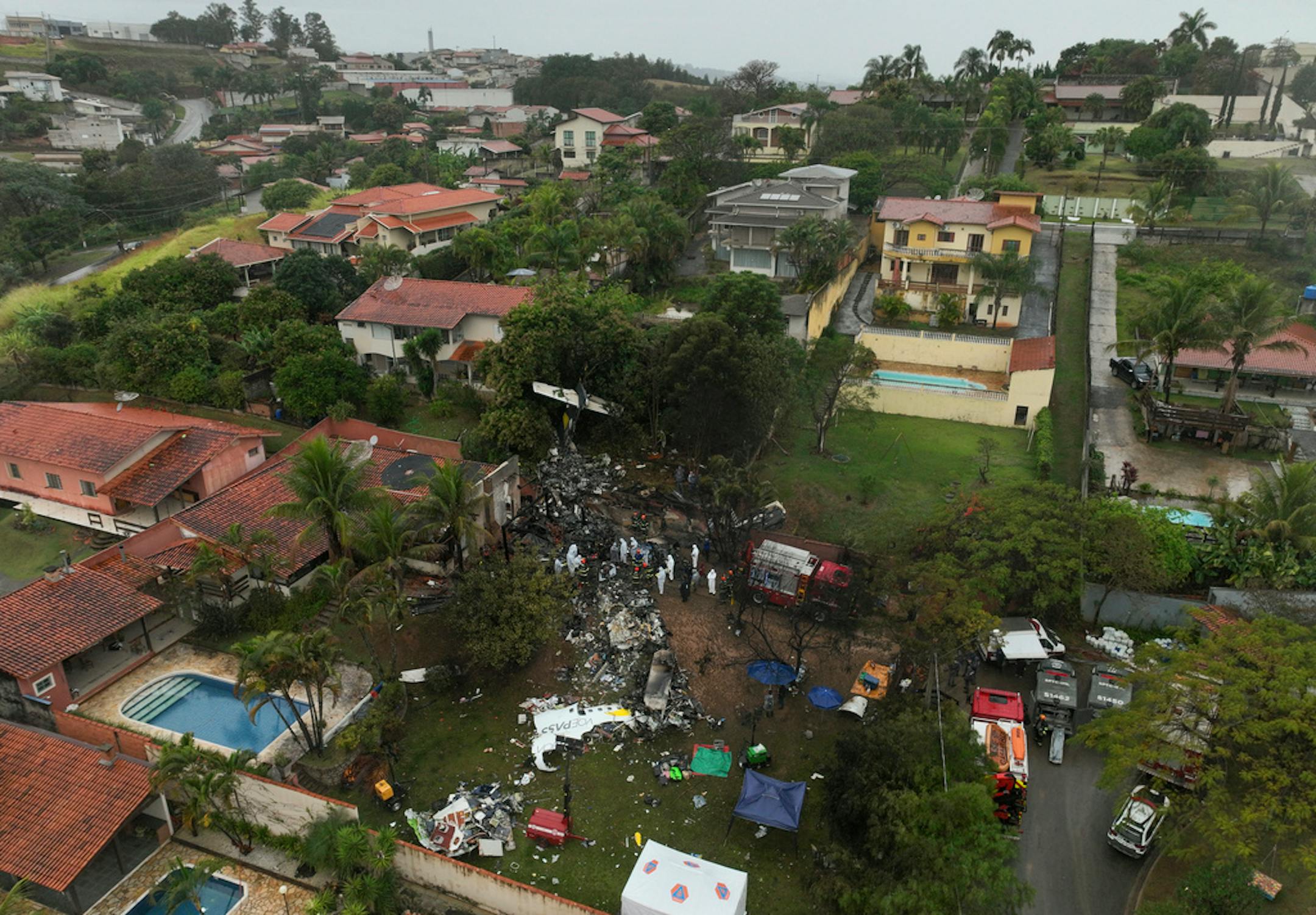 Local airline Voepass' plane, an ATR 72 twin-engine turboprop, was headed for Sao Paulo's international airport in Guarulhos with 58 passengers and four crew members, when it went down in the city of Vinhedo.